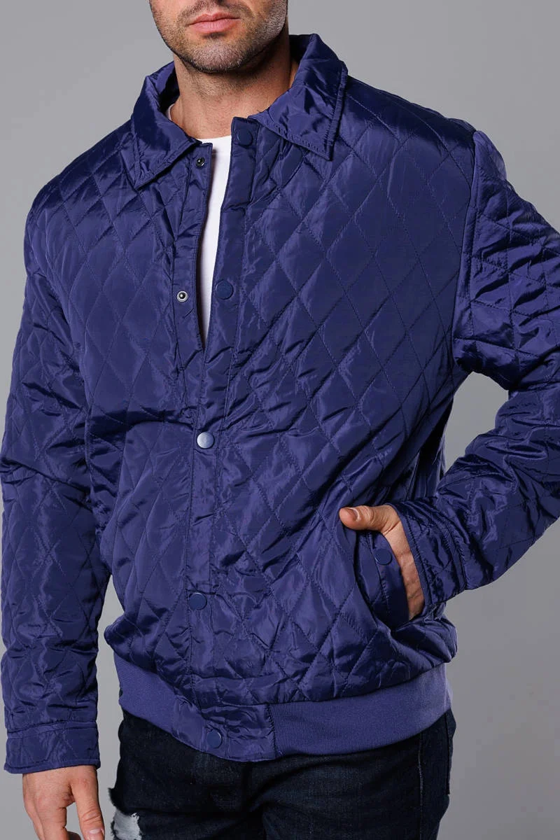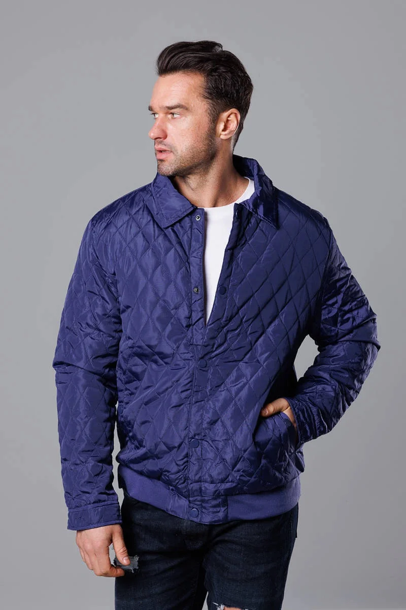 Tmavě modrá pánská prošívaná bunda s límcem model 18344909 - J.STYLE
