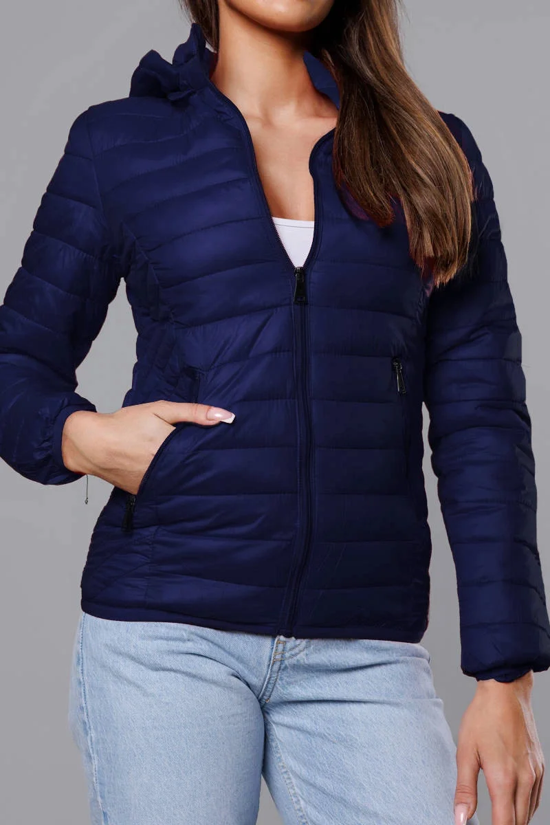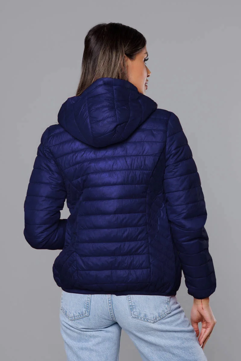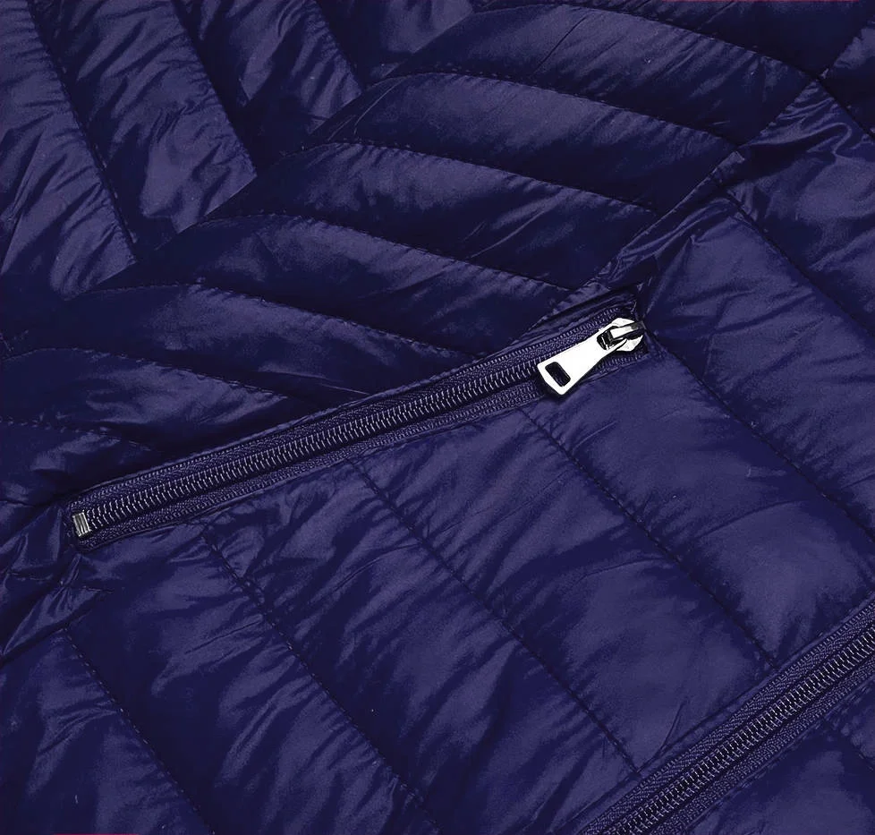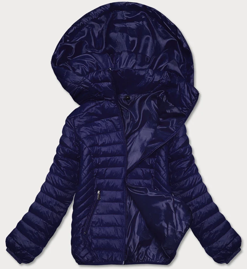 Přidání recenze k Tmavě modrá prošívaná dámská bunda s kapucí (B0124-3)