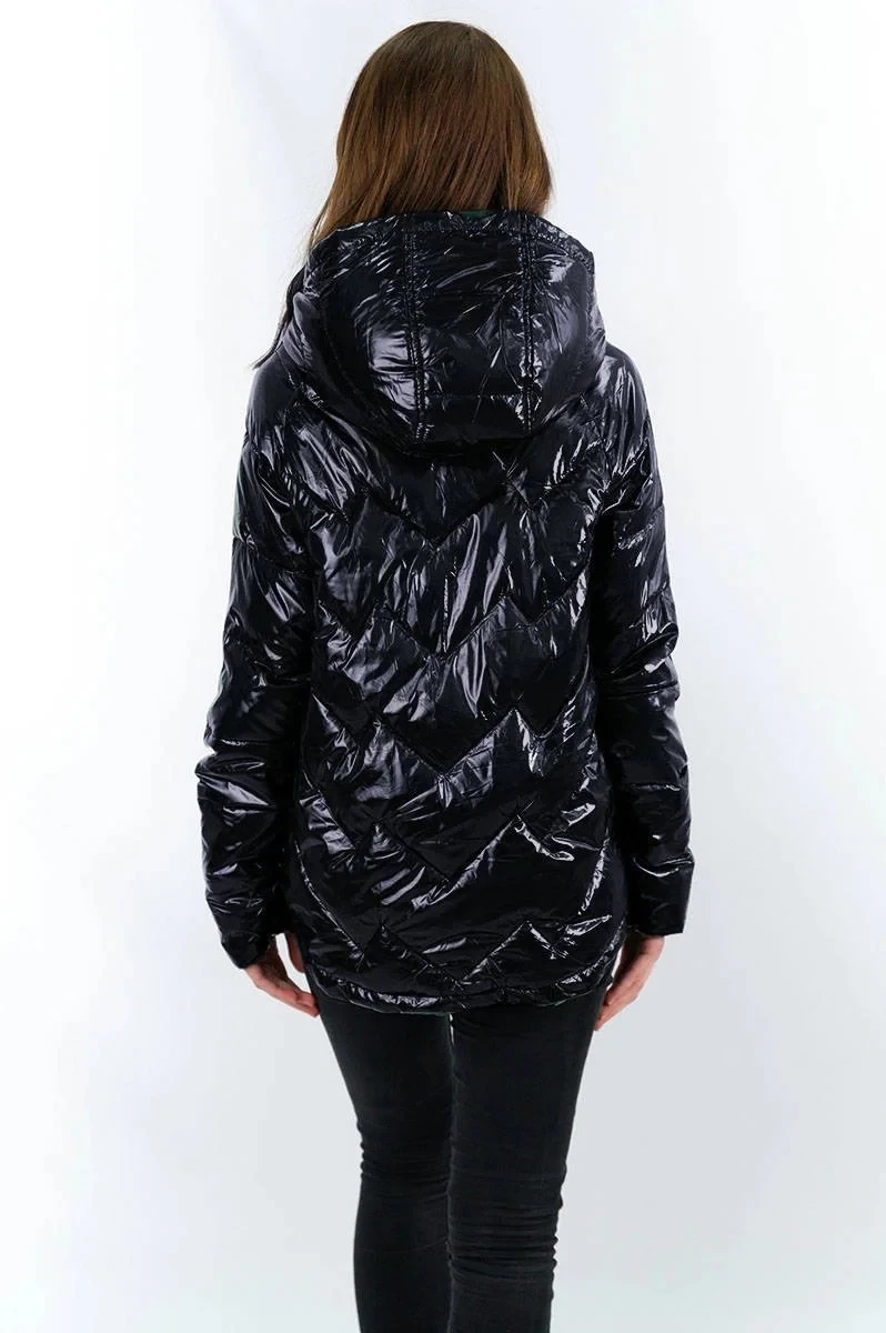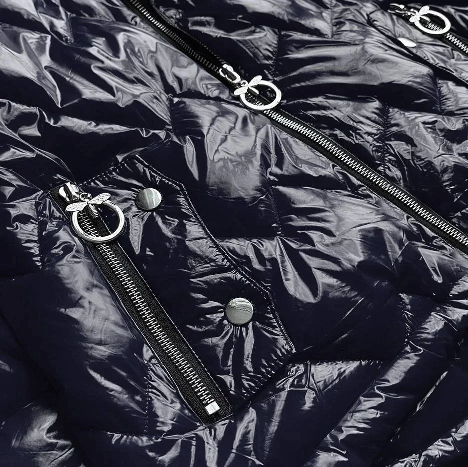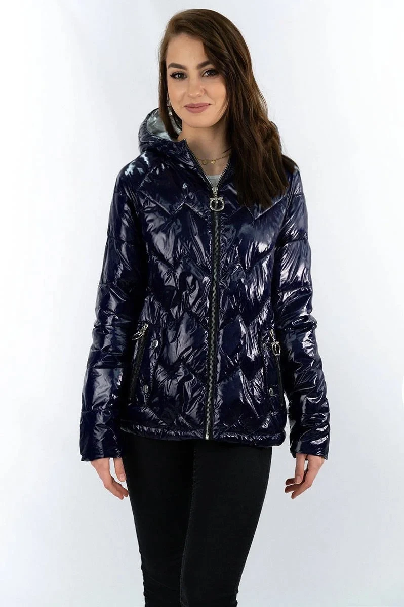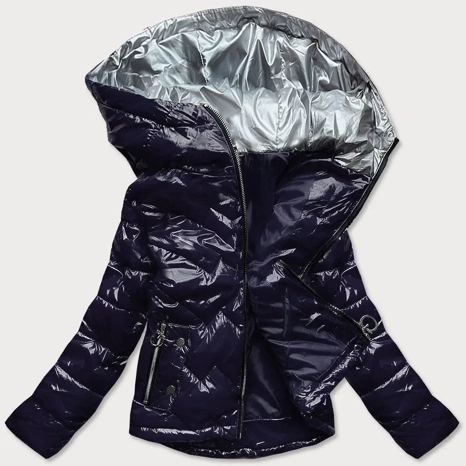 Přidání recenze k Tmavě modrá prošívaná dámská bunda s kapucí (R9562)