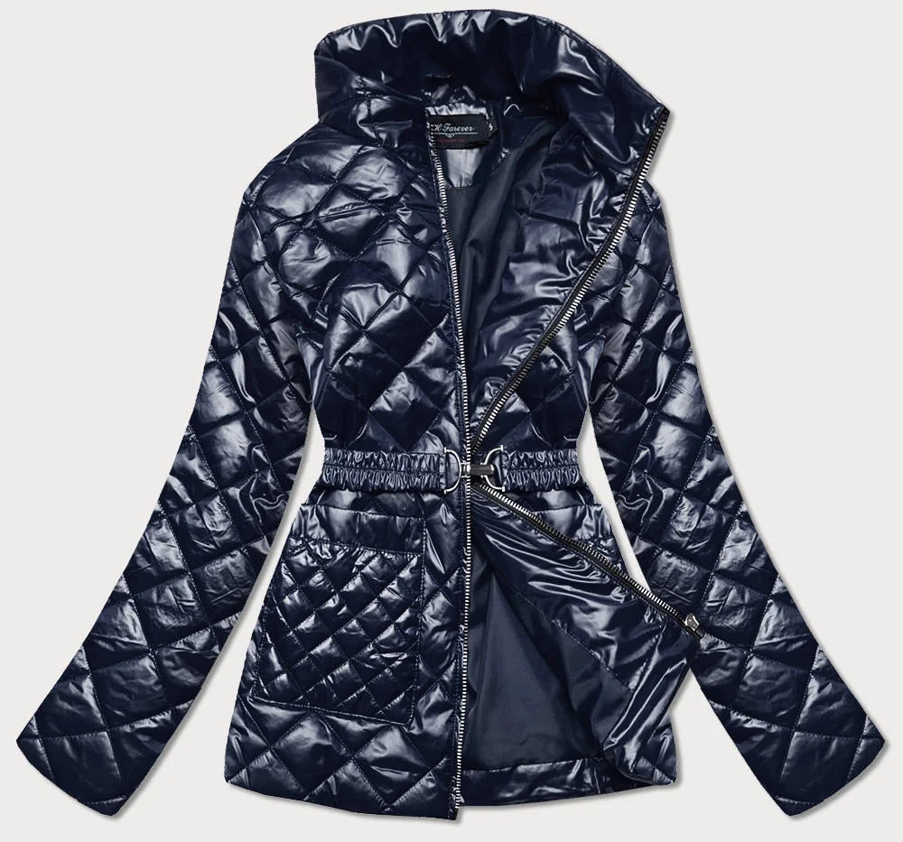 Tmavě modrá prošívaná dámská bunda s páskem model 17099015 - BH FOREVER