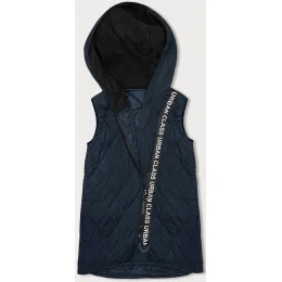 Tmavě modrá prošívaná dámská vesta s ozdobnou páskou (16M9118-215)