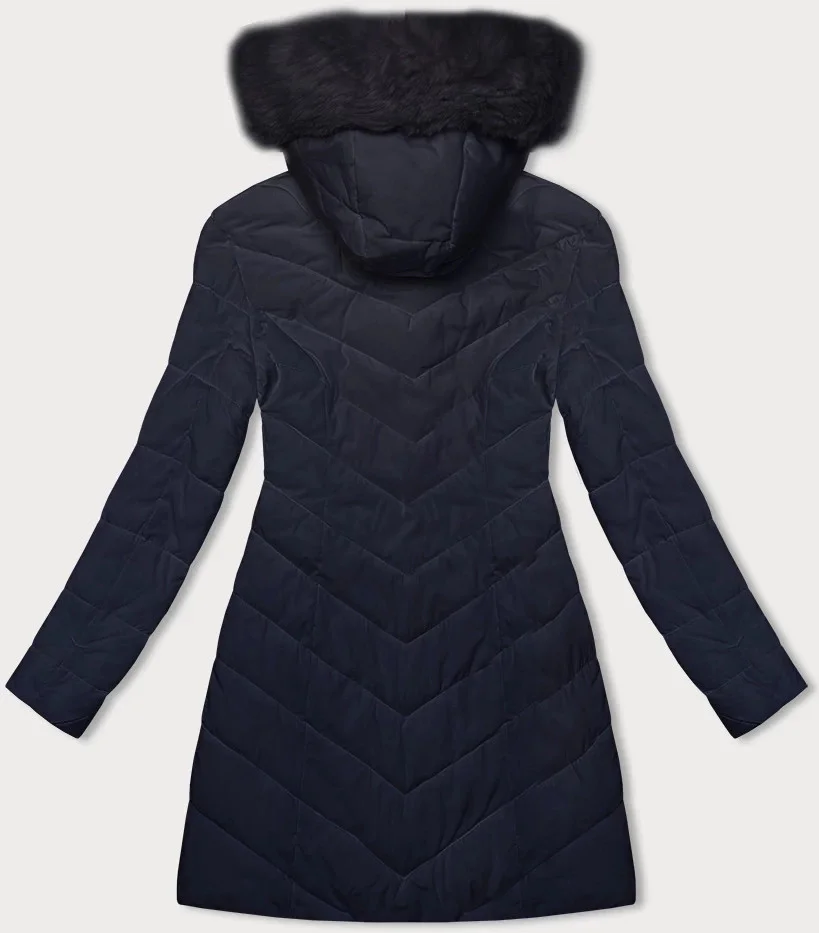 Tmavě modrá prošívaná dámská zimní bunda s kapucí LHD (2M-057)
