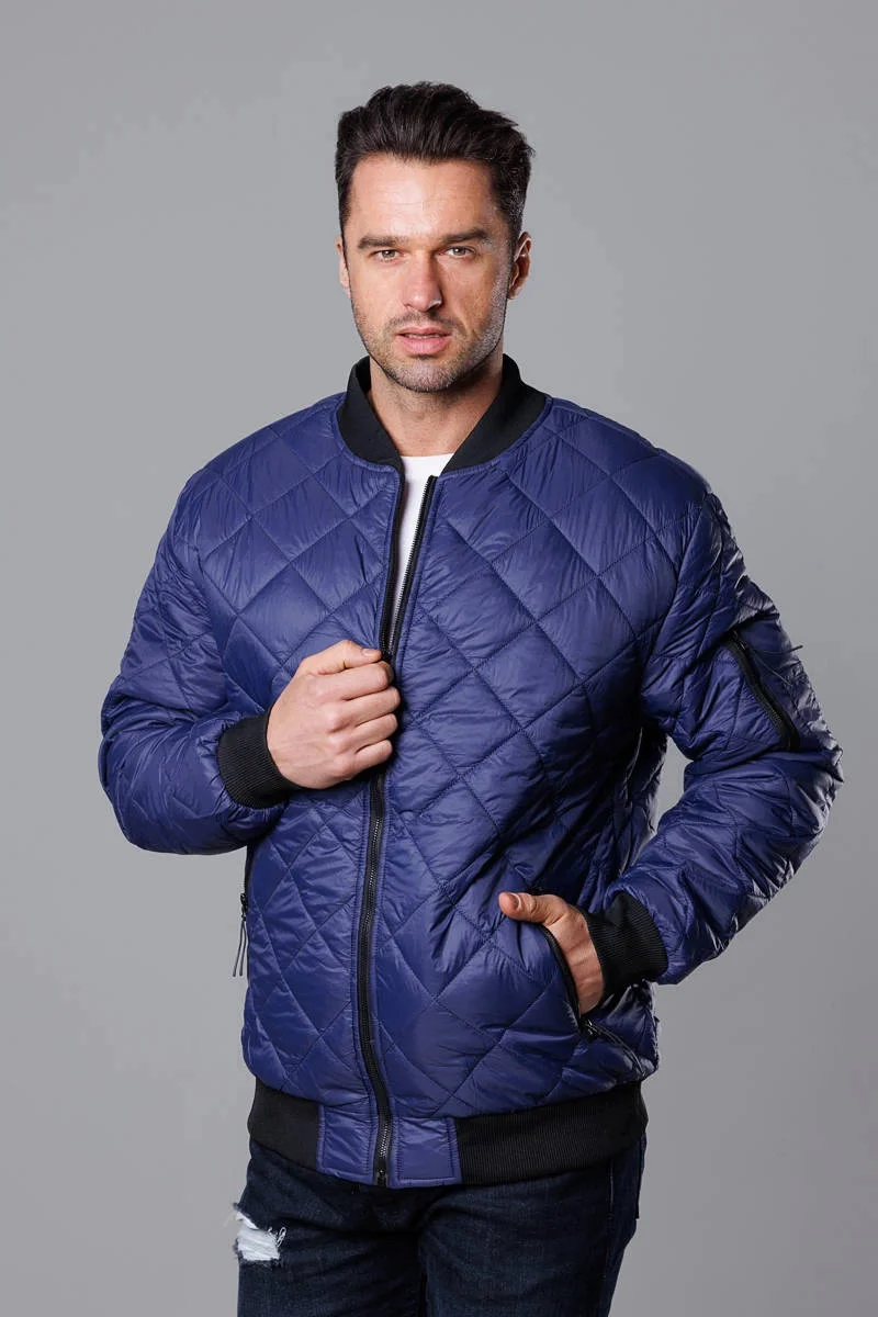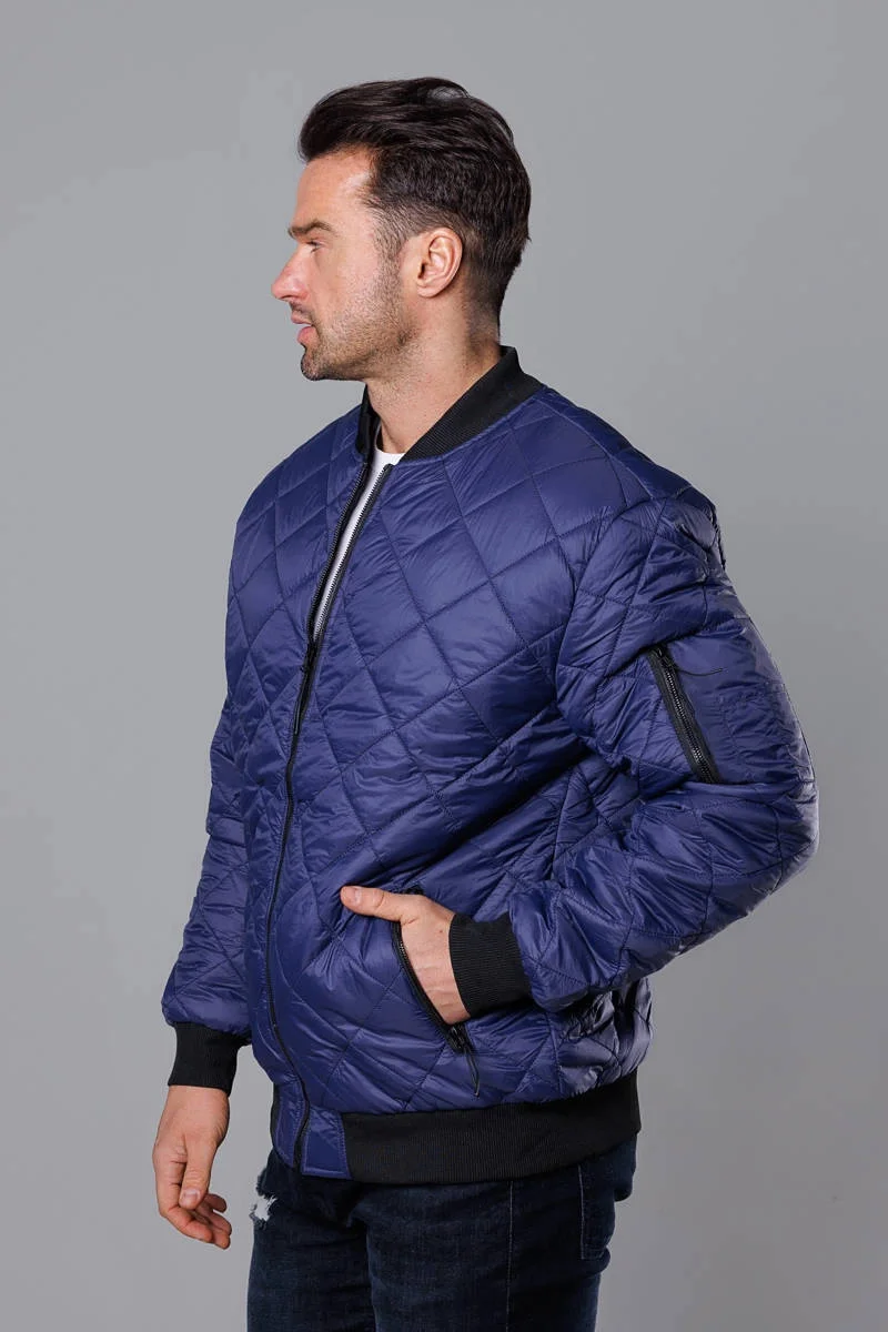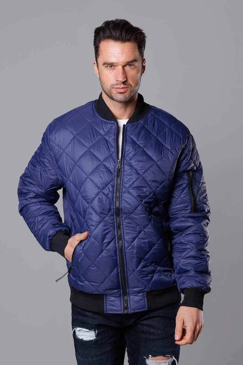 Tmavě modrá prošívaná pánská bunda typu "bomber" (MY01-2)