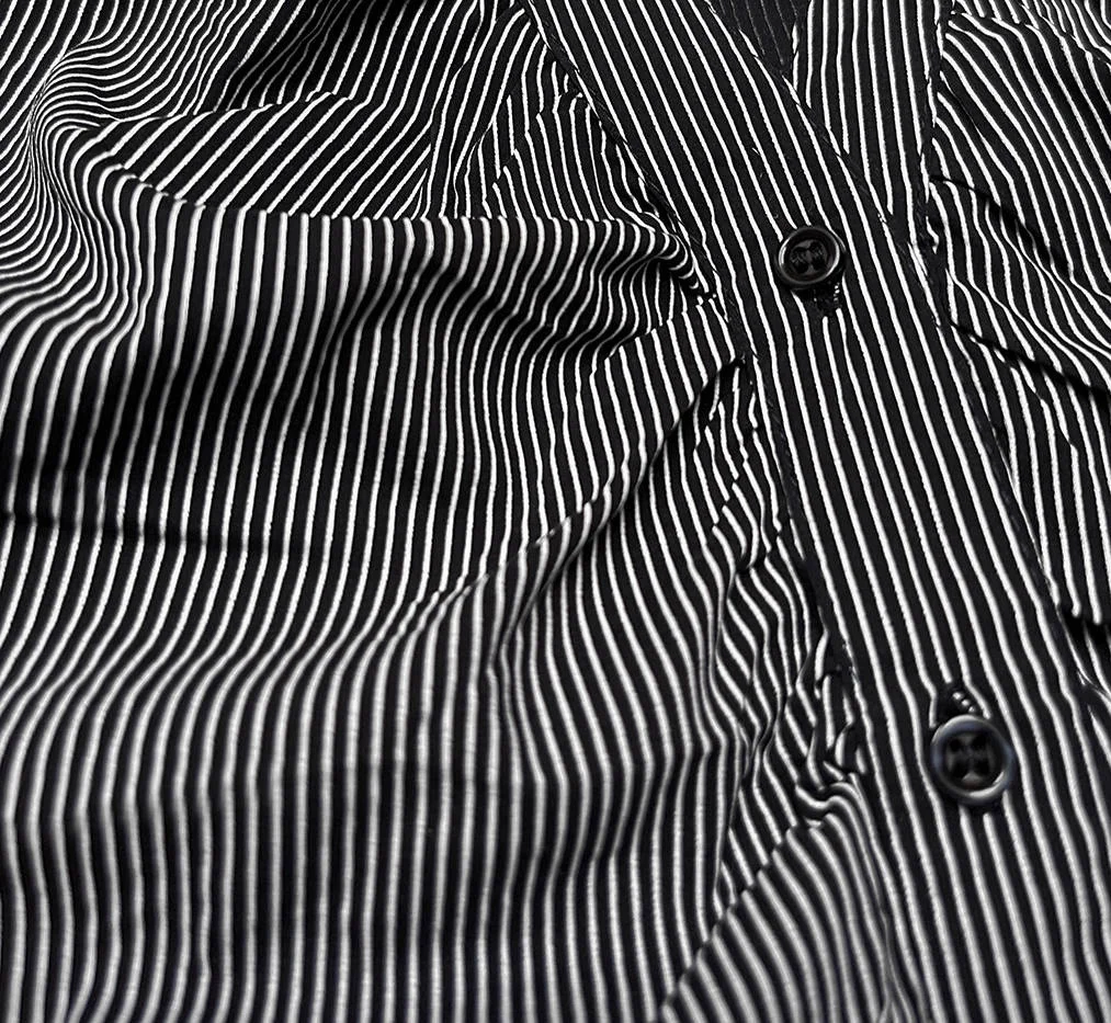 Halenka je ušitá z lehce pružného materiálu, je vypasovaná a zapíná se knoflíčky. Model má délku k bokům.