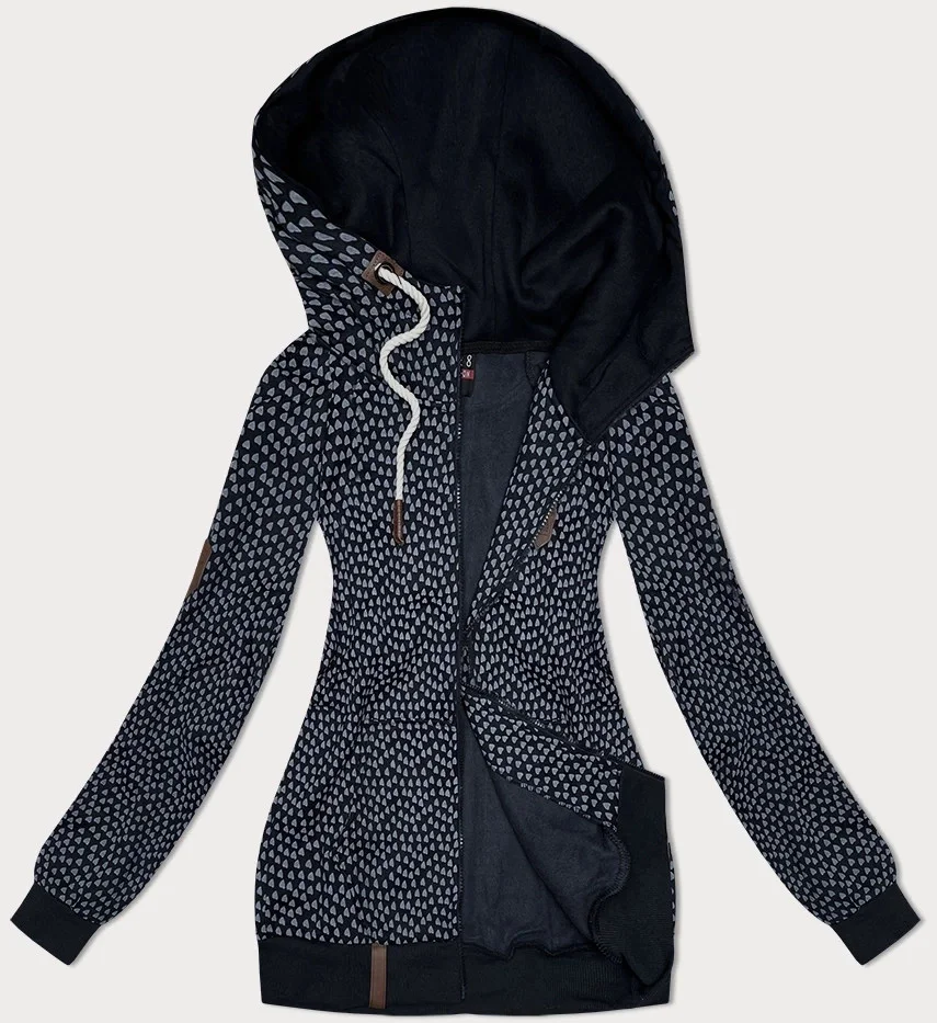 Přidání recenze k Tmavě modrá rozepínací dámská mikina se vzorem srdíček (2315)