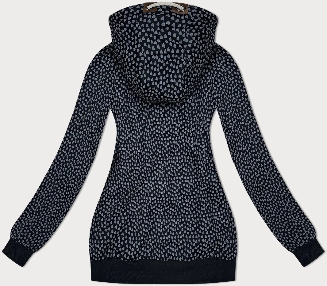 Tmavě modrá rozepínací dámská mikina se vzorem srdíček (2315)