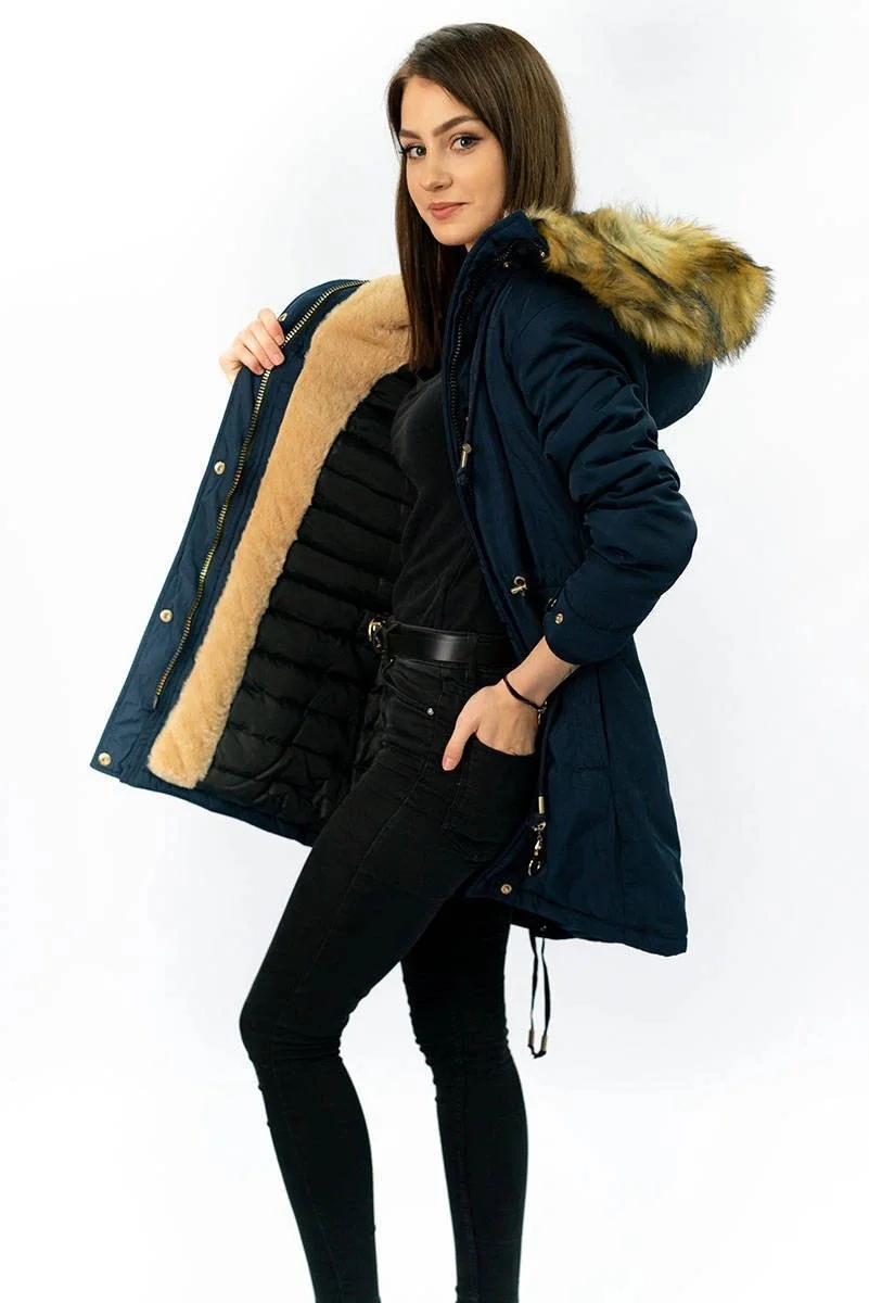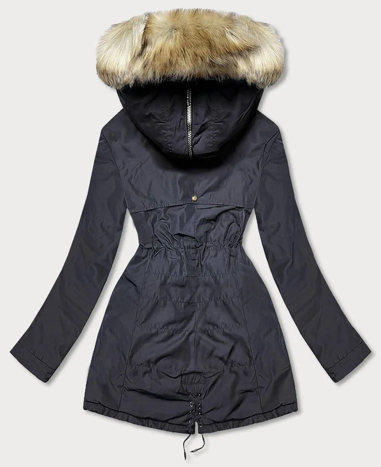 Přidání recenze k Tmavě modrá teplá dámská zimní bunda parka (w165)