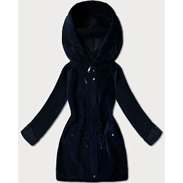 Tmavě modrá vlněná bunda typu alpaka s kapucí model 21482433 - MHM