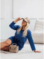 Tmavě modré dámské bavlněné šaty se šňůrkou (719)
