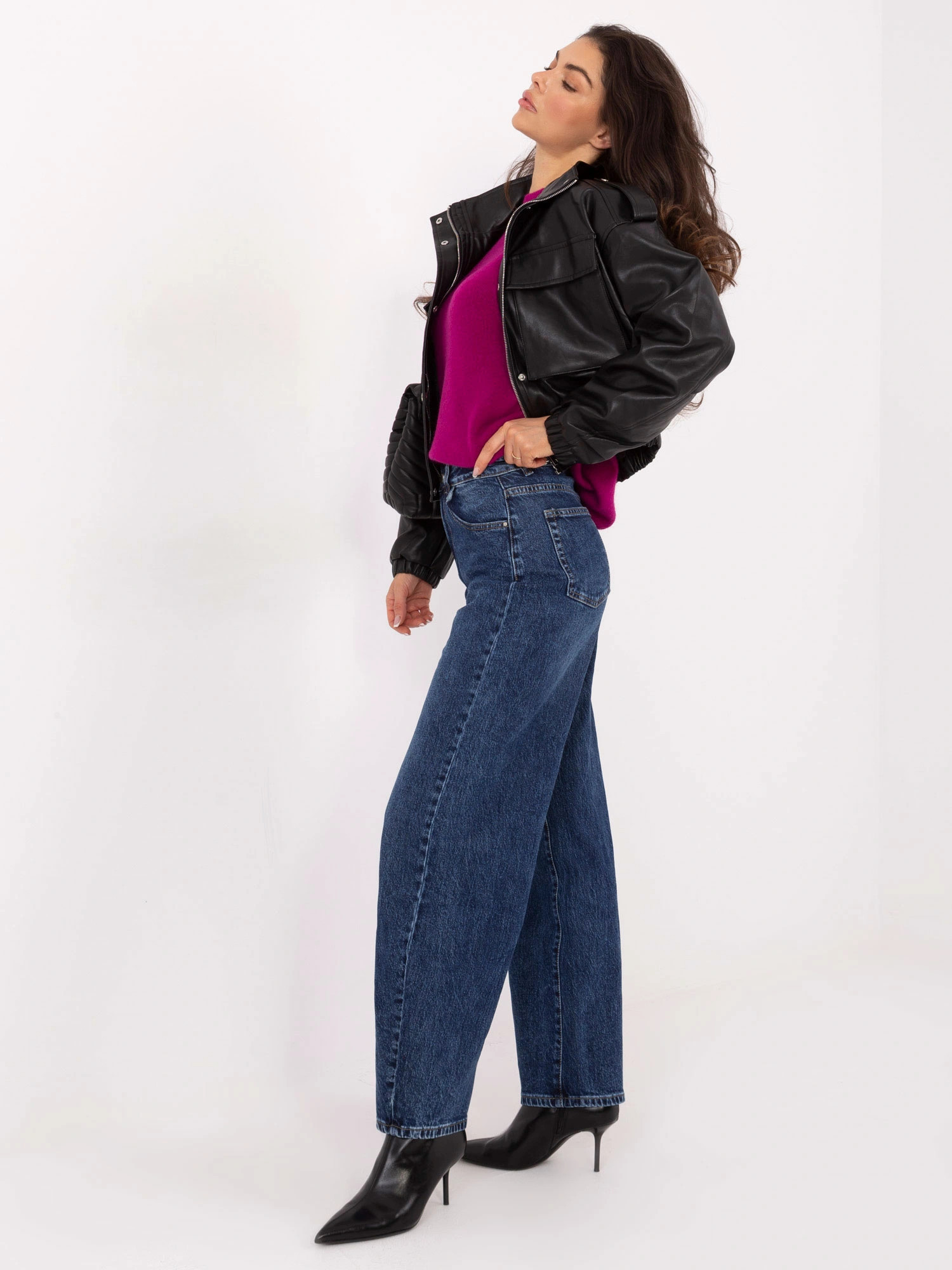 Tmavě modré dámské džínové kalhoty typu balloon fit Goodlookin (RE3220)