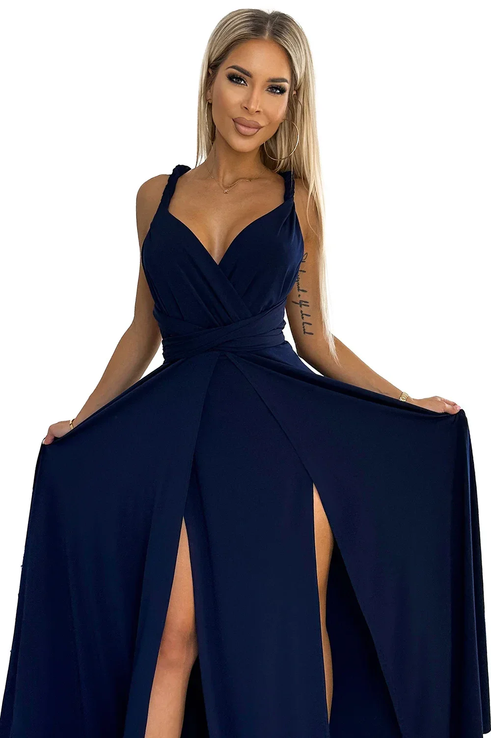 Přidání recenze k Tmavě modré elegantní dlouhé dámské šaty s model 19158867 - numoco