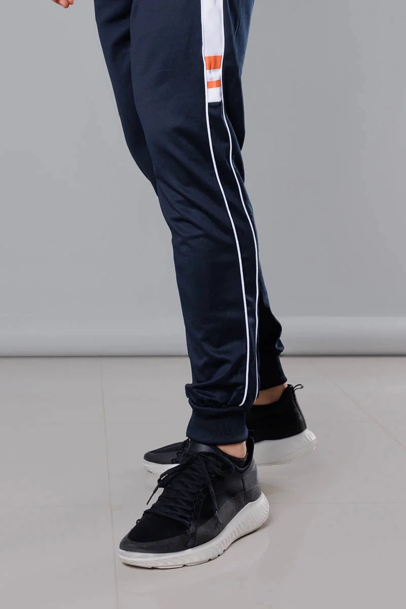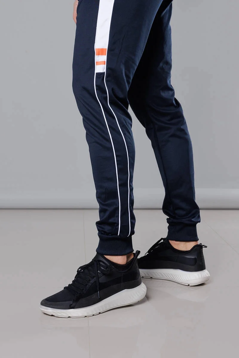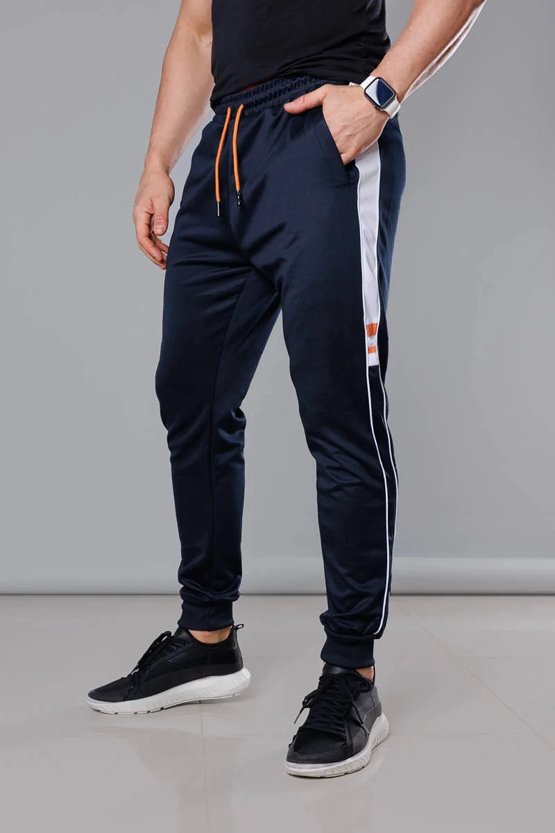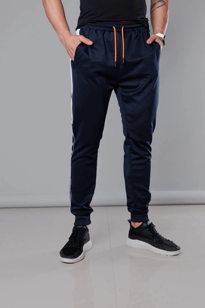 Tmavě modré pánské teplákové kalhoty s lampasy (8K161)