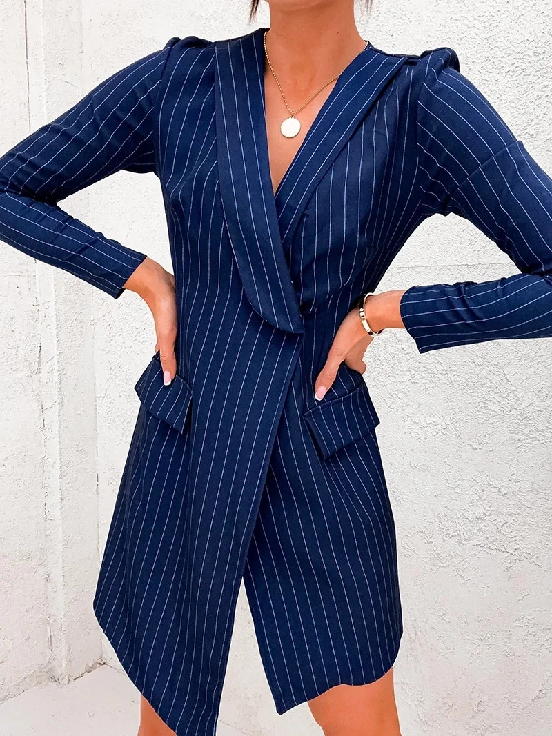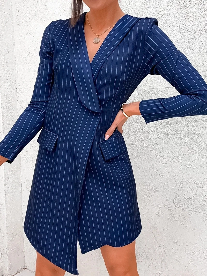 Přidání recenze k Tmavě modré žebrované pruhované šaty ve stylu saka model 19686378 - Moon