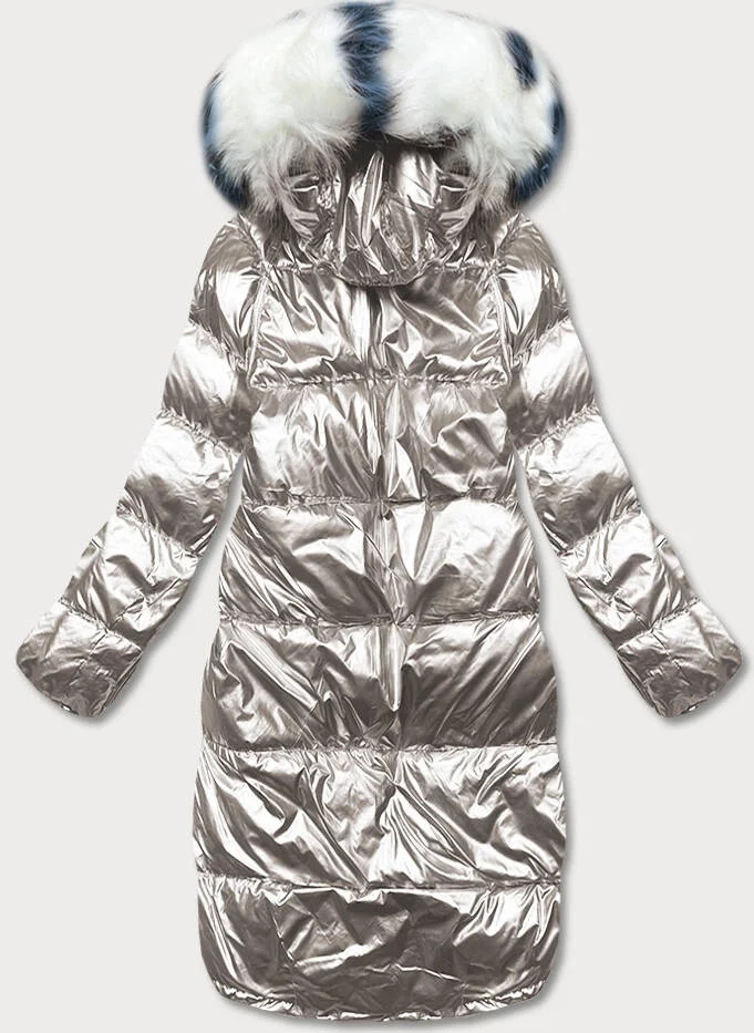 Tmavě modro-béžová oboustranná metalická zimní bunda (p21-7901-99+62)