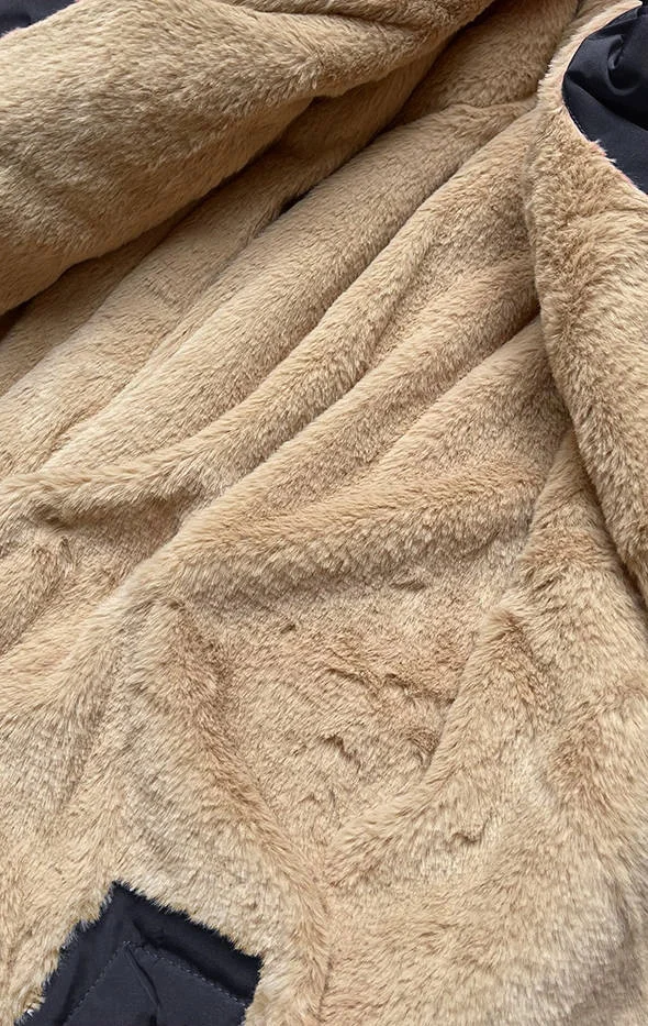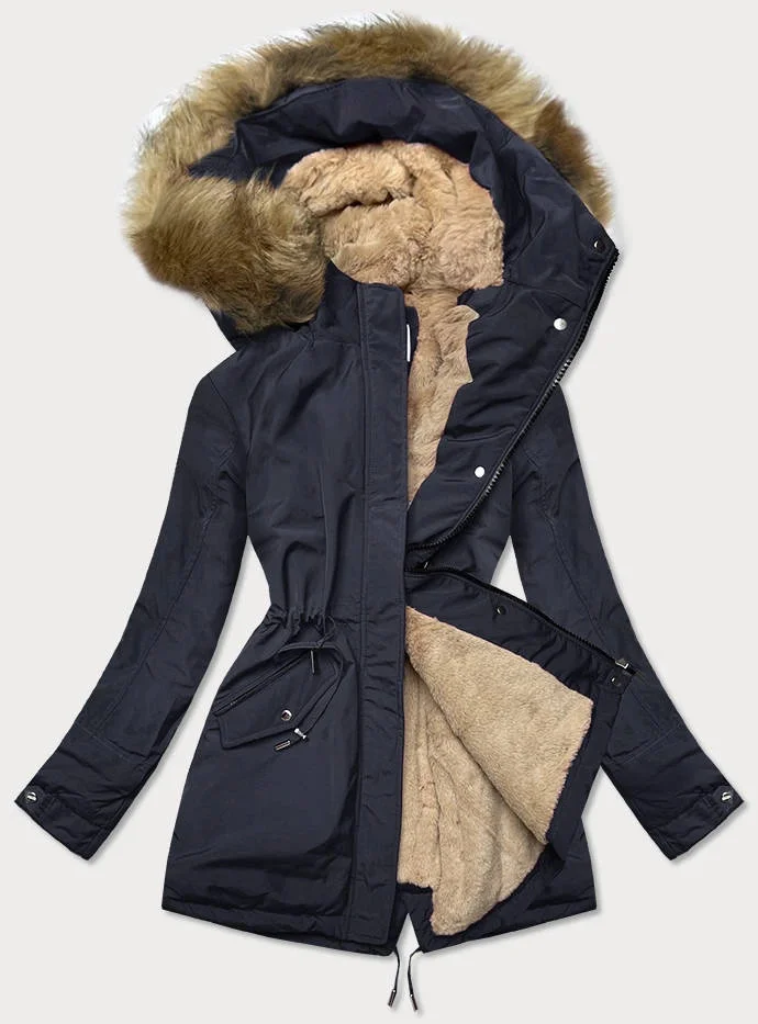 Přidání recenze k Tmavě modro-béžová teplá dámská zimní bunda (w559)