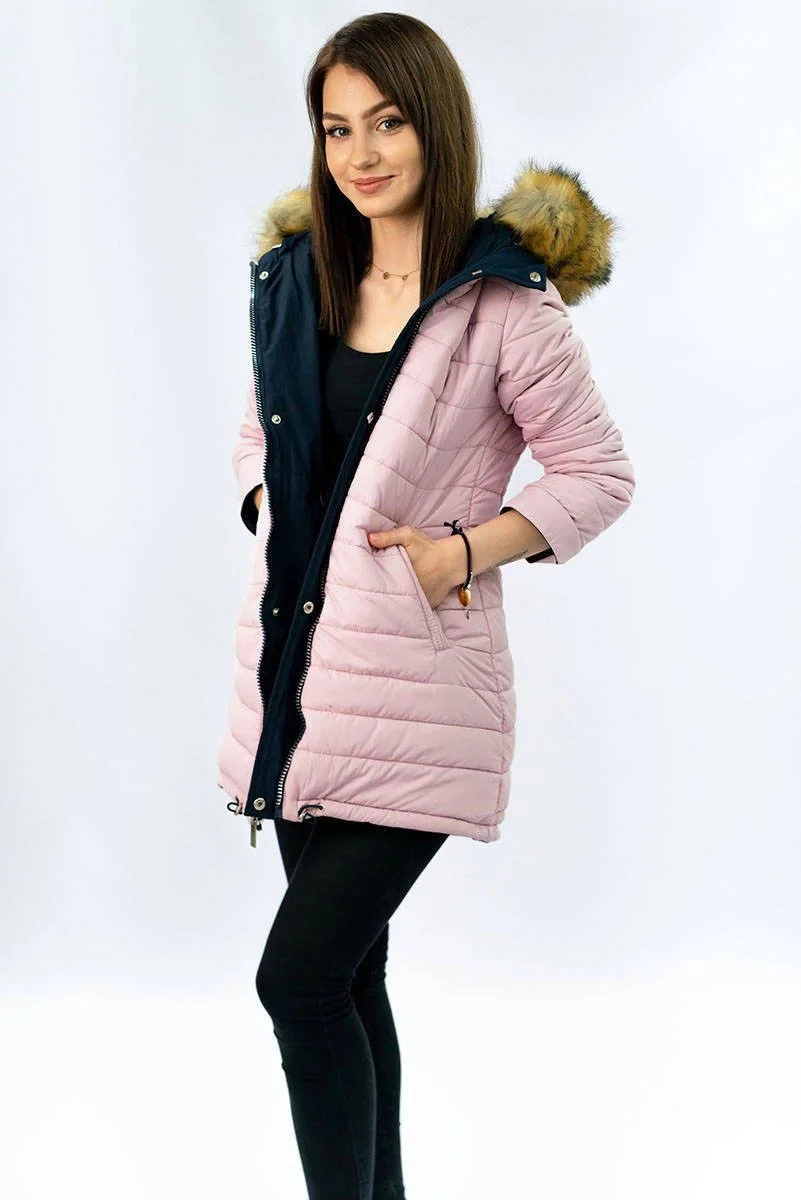 Přidání recenze k Tmavě modro-růžová oboustranná dámská zimní bunda s kapucí (w213)