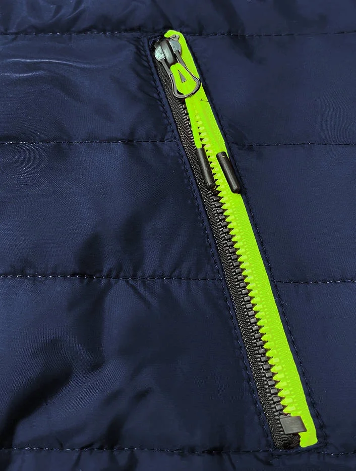 Bunda je lehce zateplená, má dvě kapsy a zapíná se zipem. Model má kapuci, kterou není možné odepnout. Bunda má délku k bokům a je olemovaná stahovacími lemy.