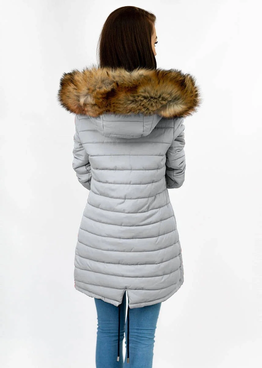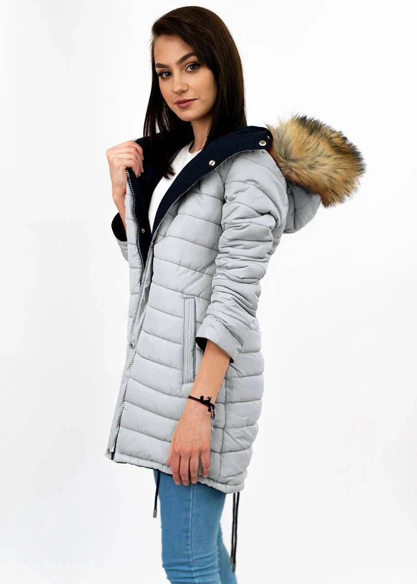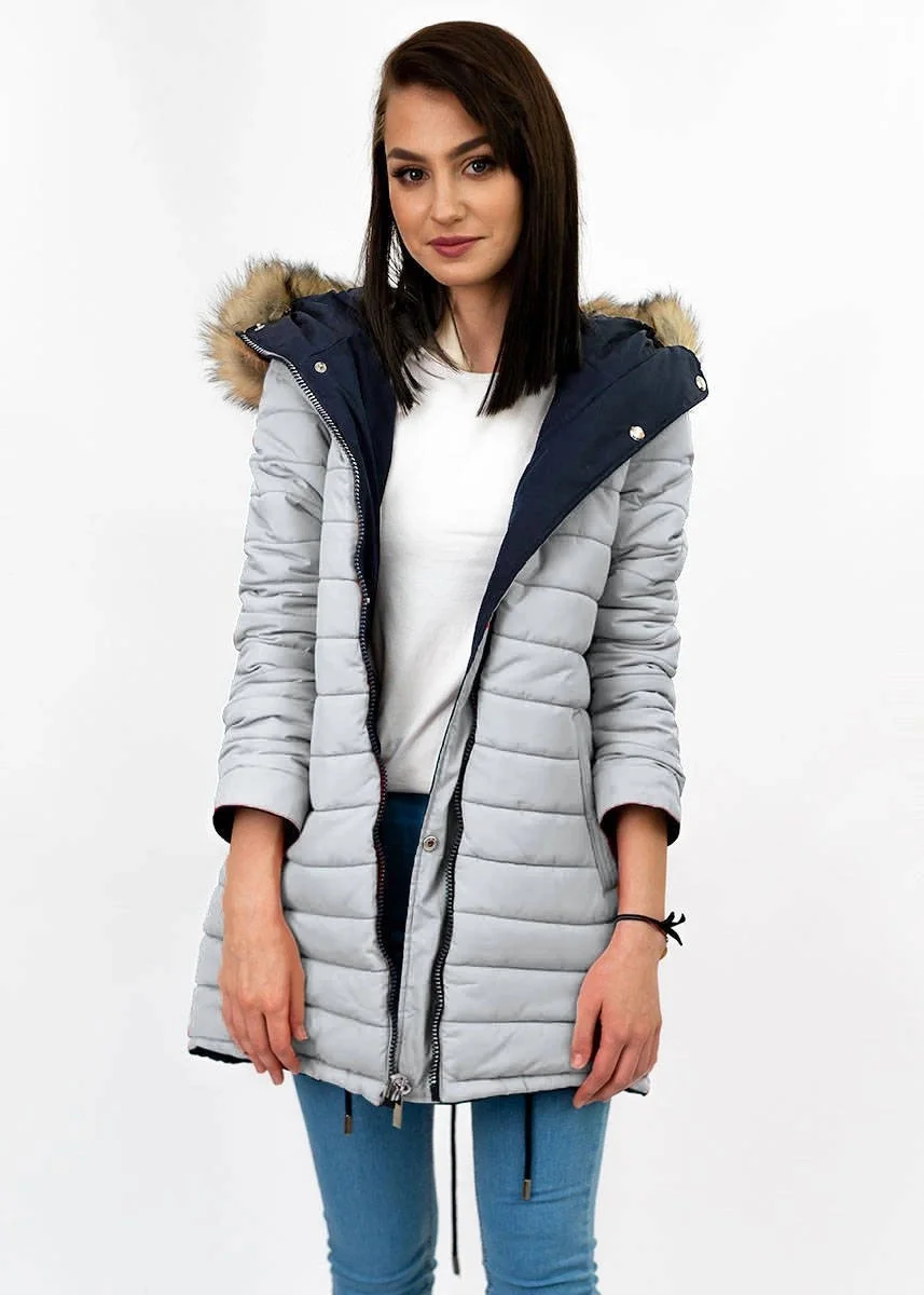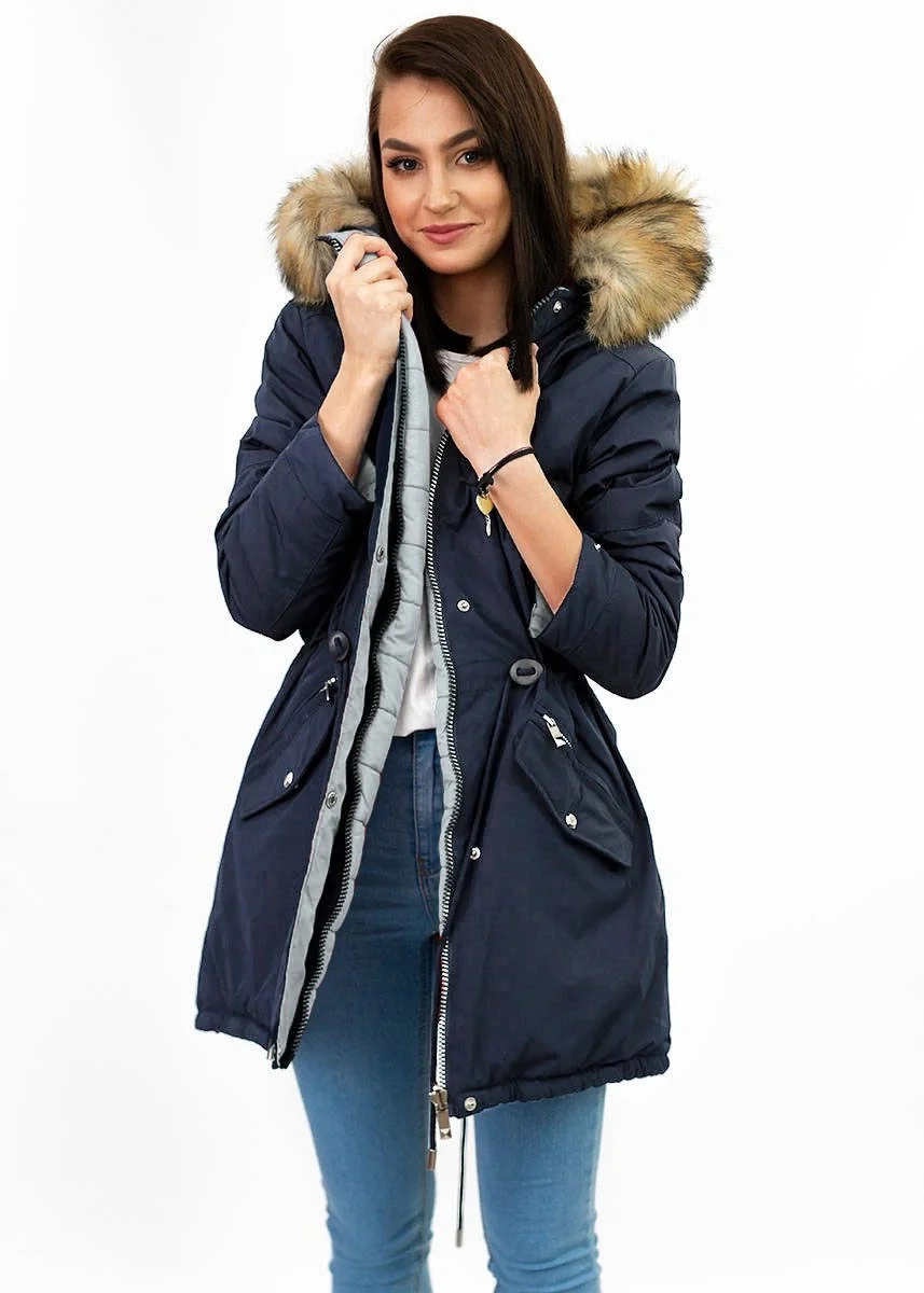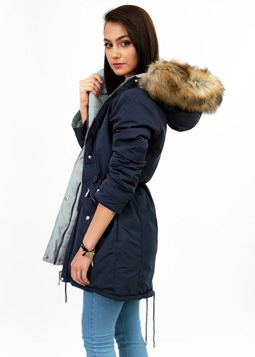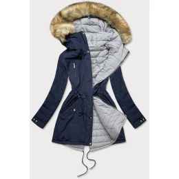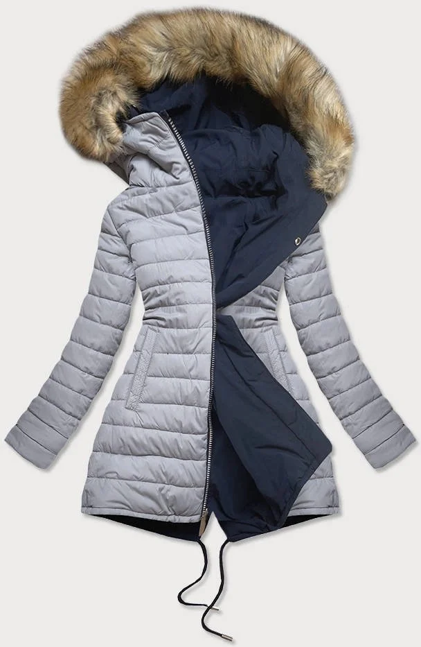 Přidání recenze k Tmavě modro-šedá oboustranná dámská zimní bunda s kapucí (w210)