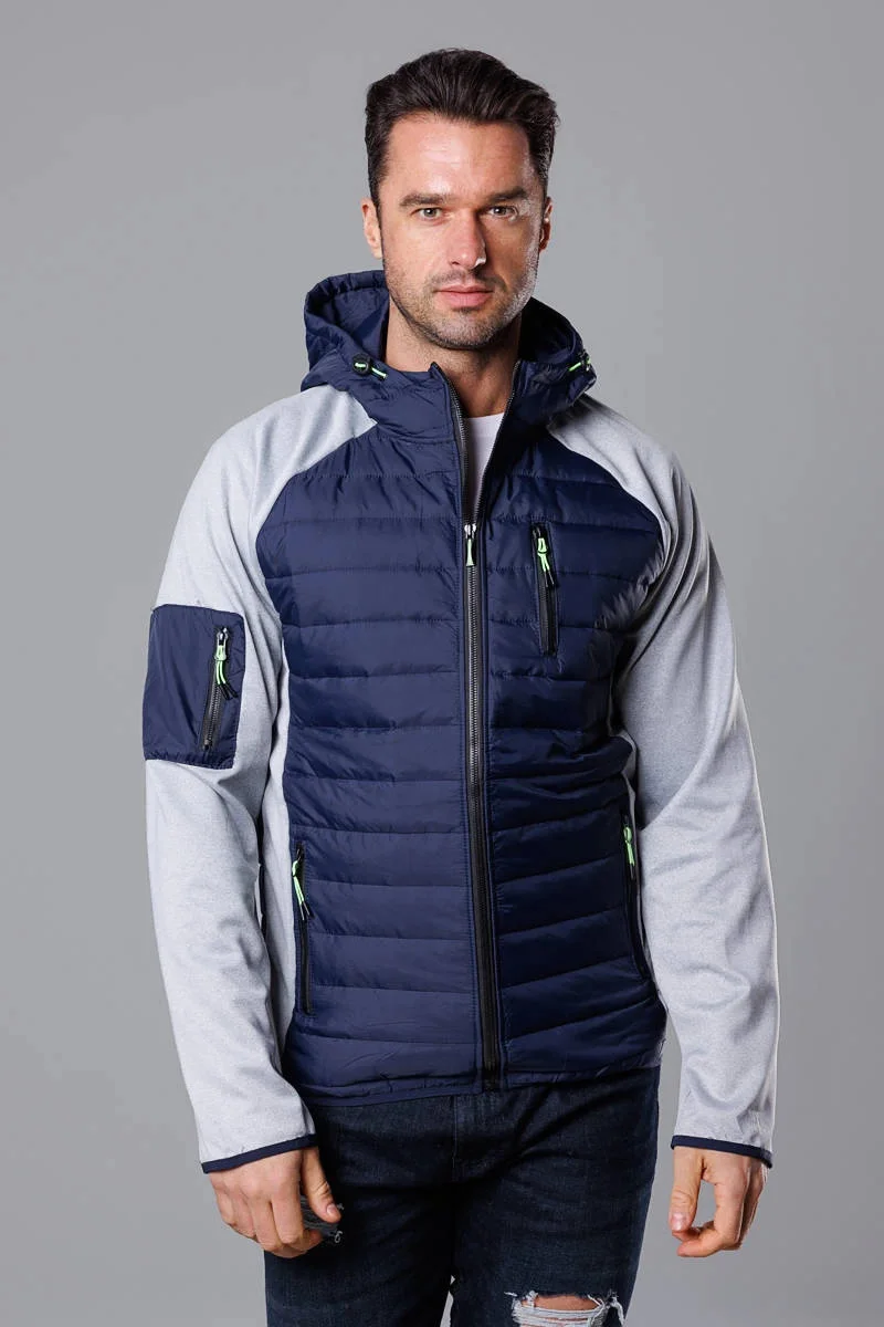 Tmavě modro-šedá pánská sportovní bunda z různých spojených materiálů (8M906-215)
