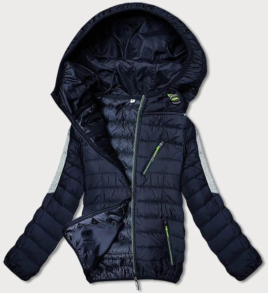 Přidání recenze k Tmavě modro-šedá prošívaná dámská bunda s kapucí (8M912-215)