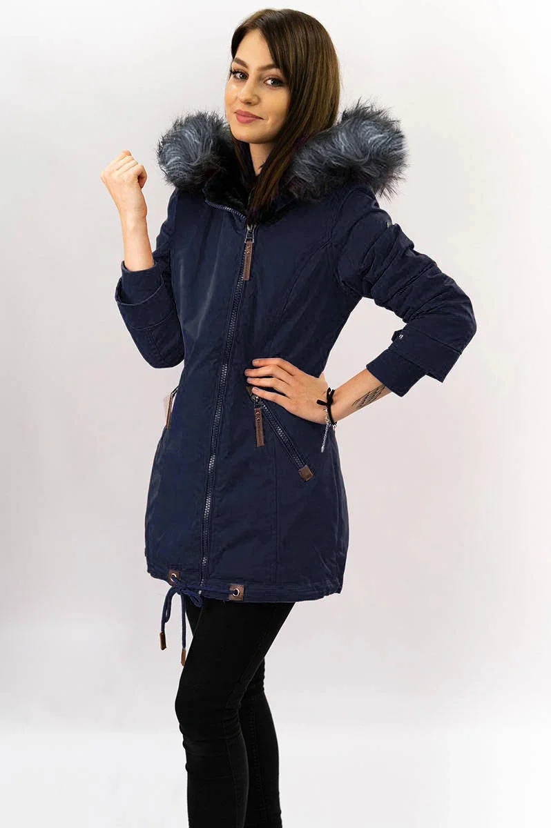 Přidání recenze k Tmavě modro-šedá voděodolná dámská bunda parka (m-923)