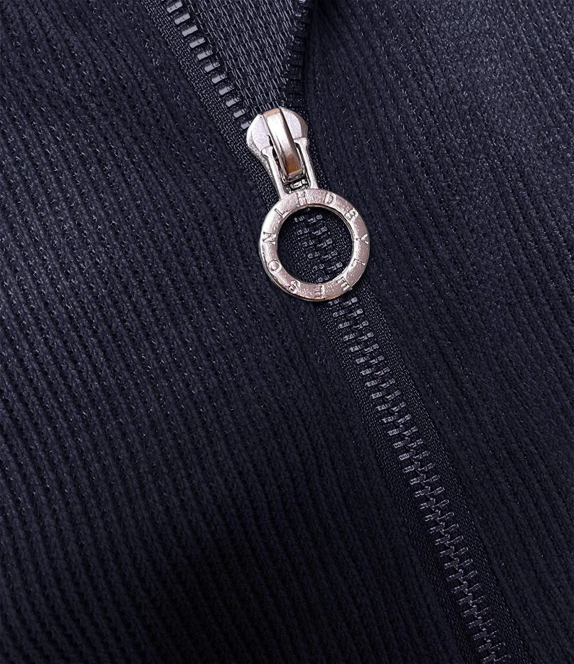 Mikina je vyrobená z materiálu typu "wafel", má krátký zip a obléká se přes hlavu. Na koncích rukávů a na spodním okraji modelu jsou stahovací lemy. Model má délku do pasu.