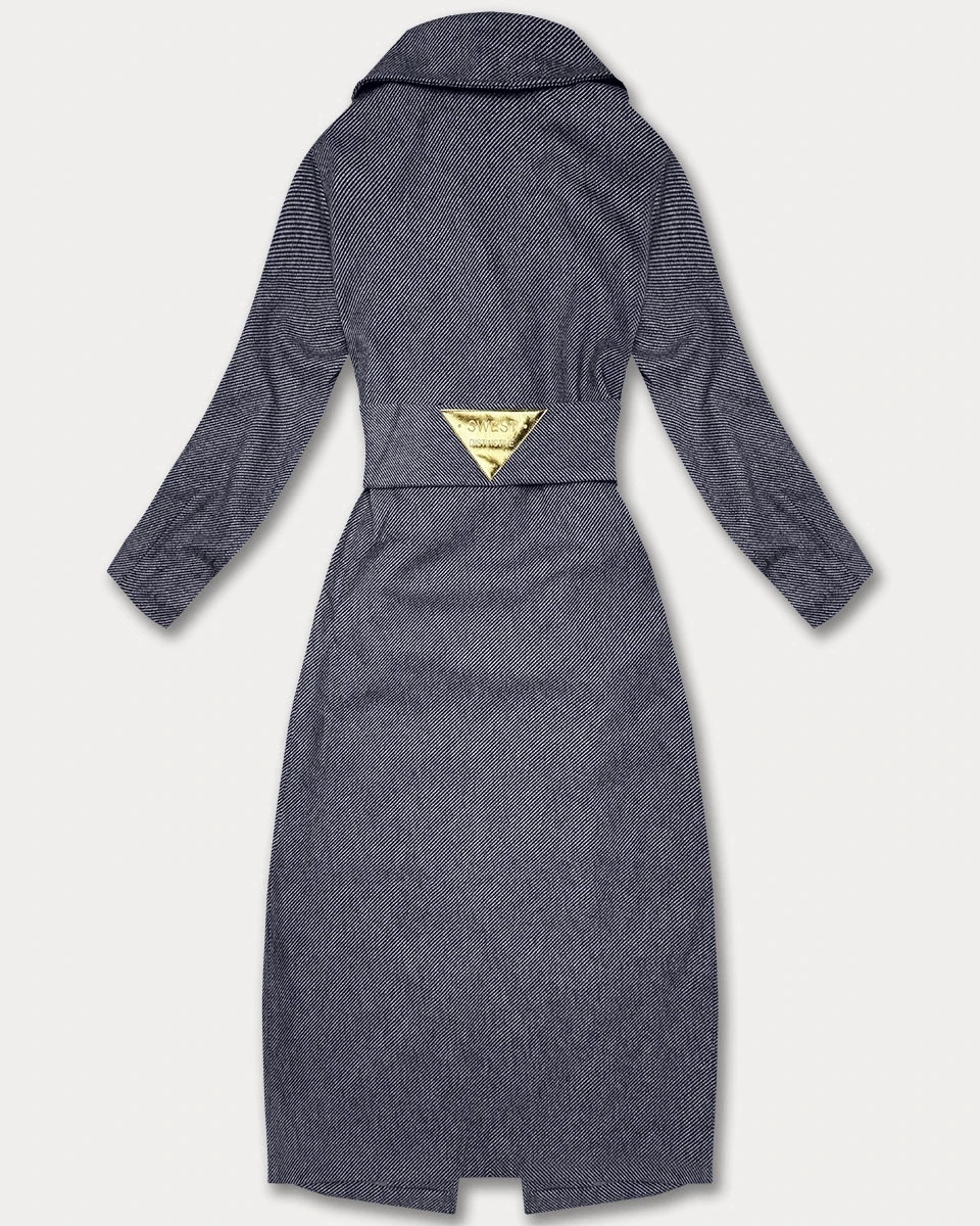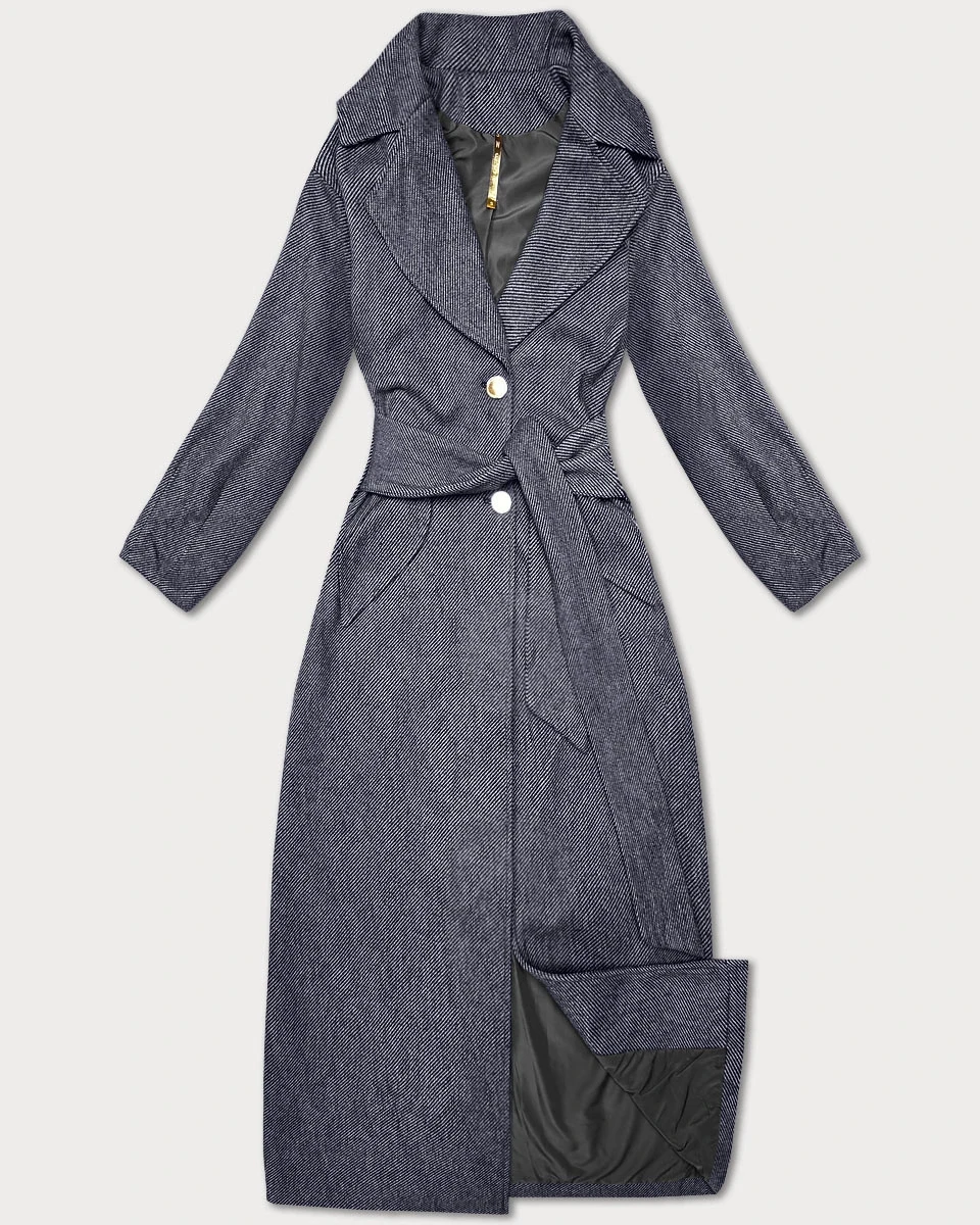 Tmavě modrý dlouhý pruhovaný dámský kabát s páskem S'West (B8542-26)