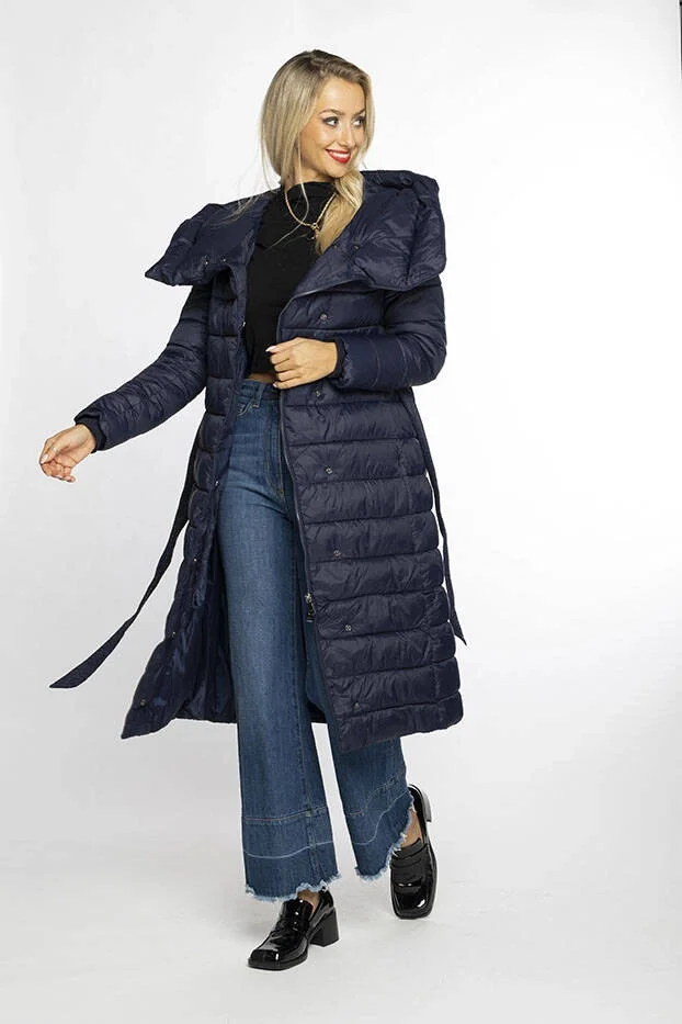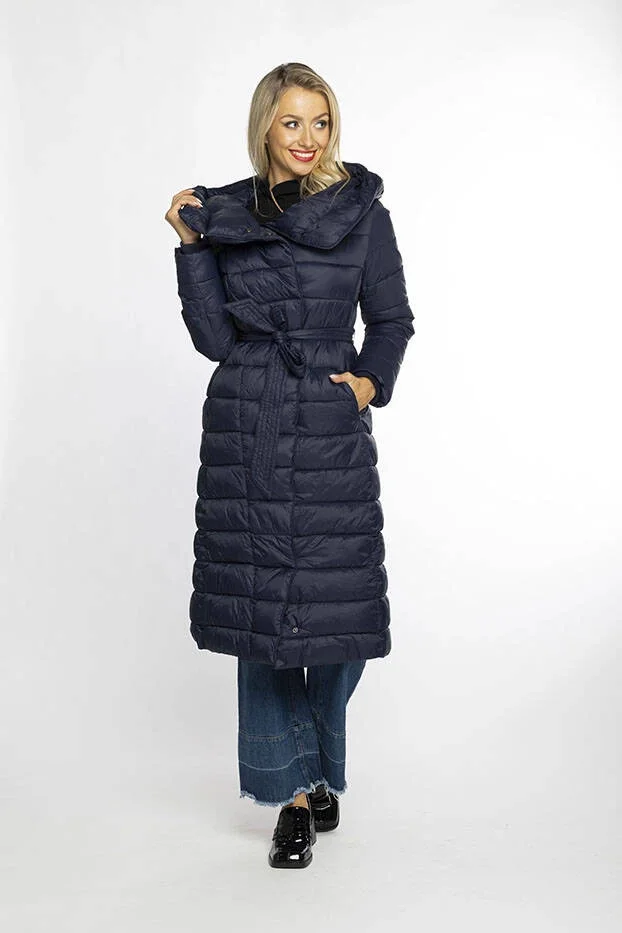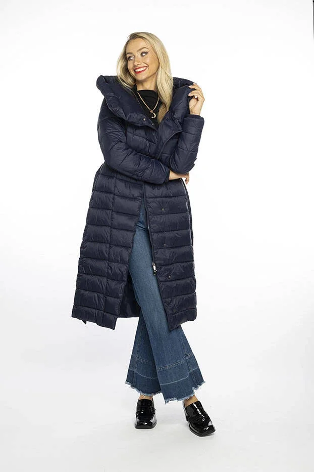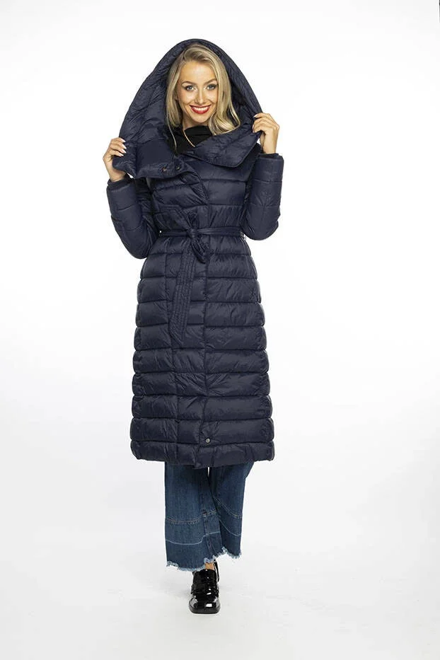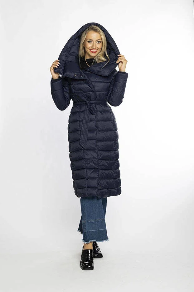 Tmavě modrý prošívaný kabát s vysokým stojáčkem a kapucí model 21247307 - Ann Gissy