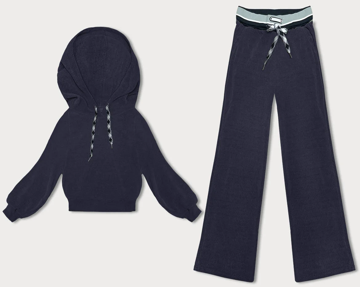 Tmavě modrý žebrovaný dámský komplet model 18878672 - LHD