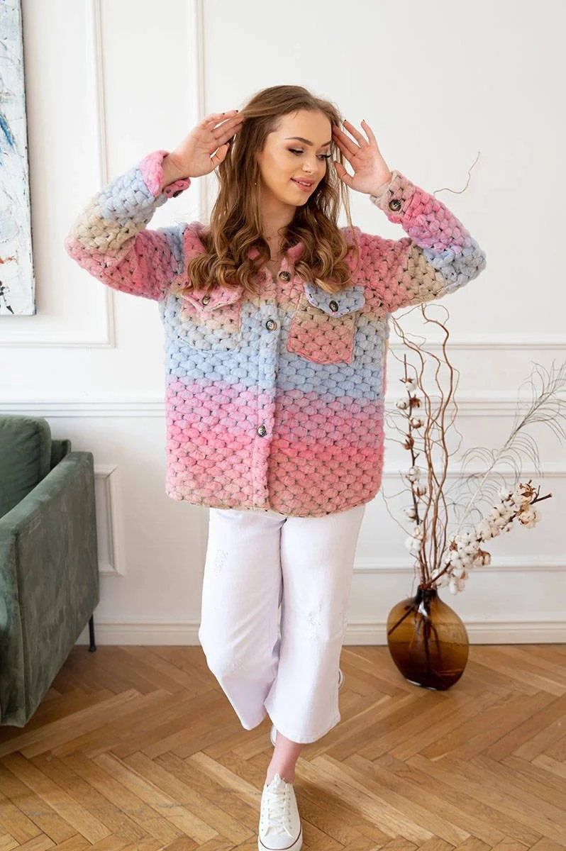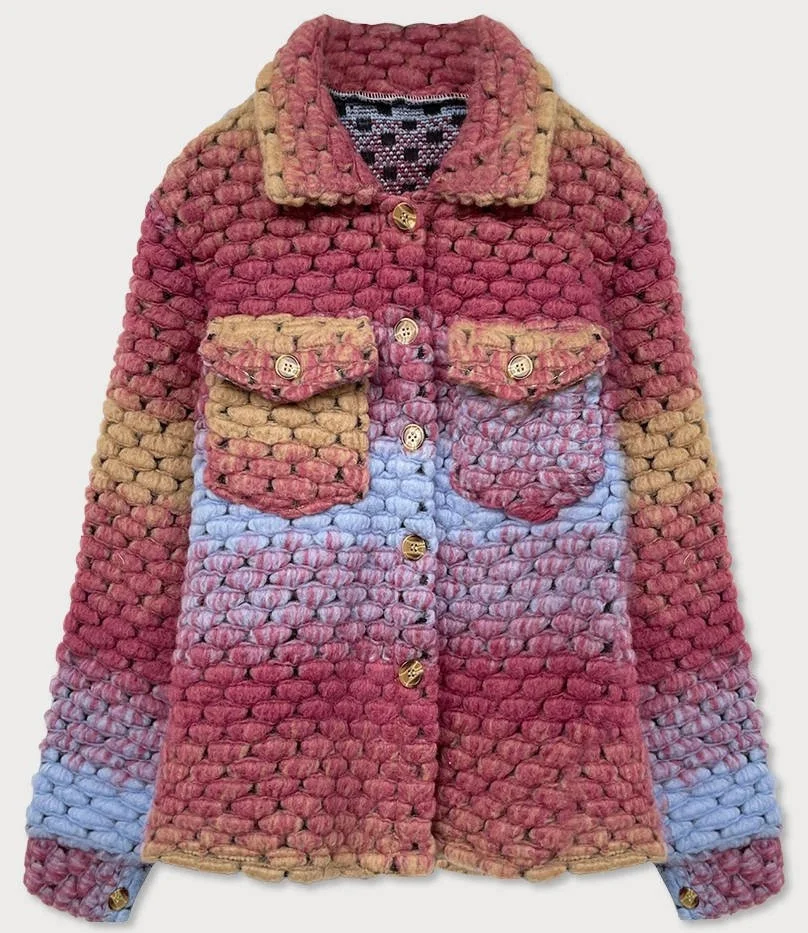 Přidání recenze k Tmavě růžová košilová dámská bunda s límcem (2453)