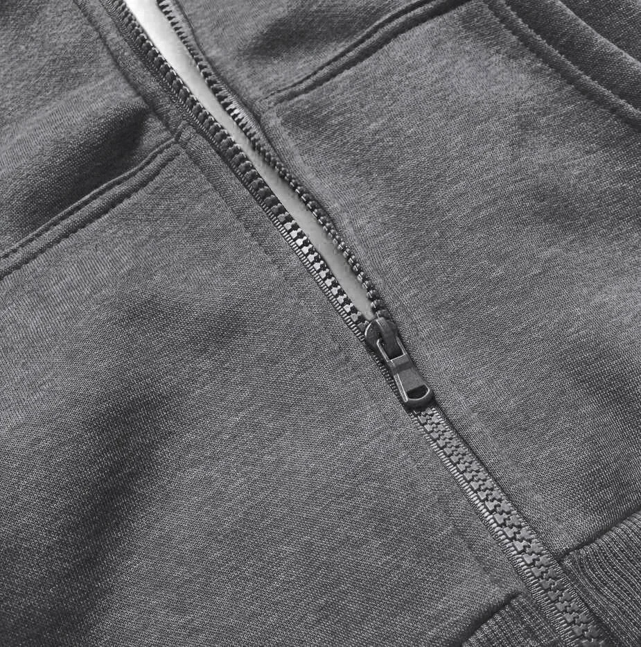 Mikina má volný střih, dvě kapsy a zapíná se zipem. Rukávy a spodní okraj modelu jsou olemované stahovacími lemy. Model má délku k bokům.