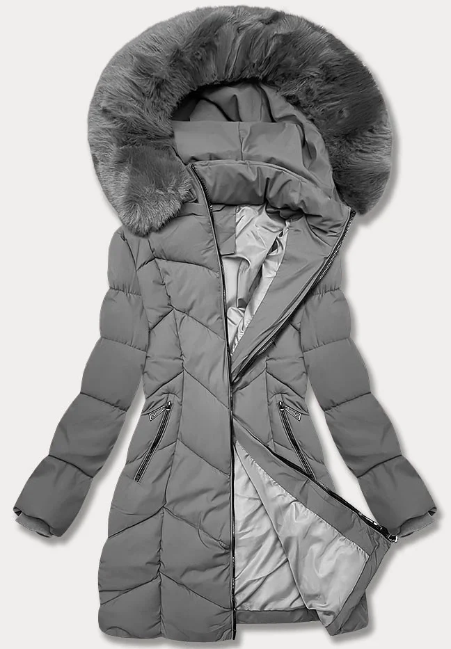 Přidání recenze k Tmavě šedá dámská zimní plus size bunda s délkou do poloviny stehen S'west (B8306-70)