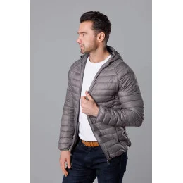 Tmavě šedá pánská prošívaná bunda s kapucí (HM112-2)