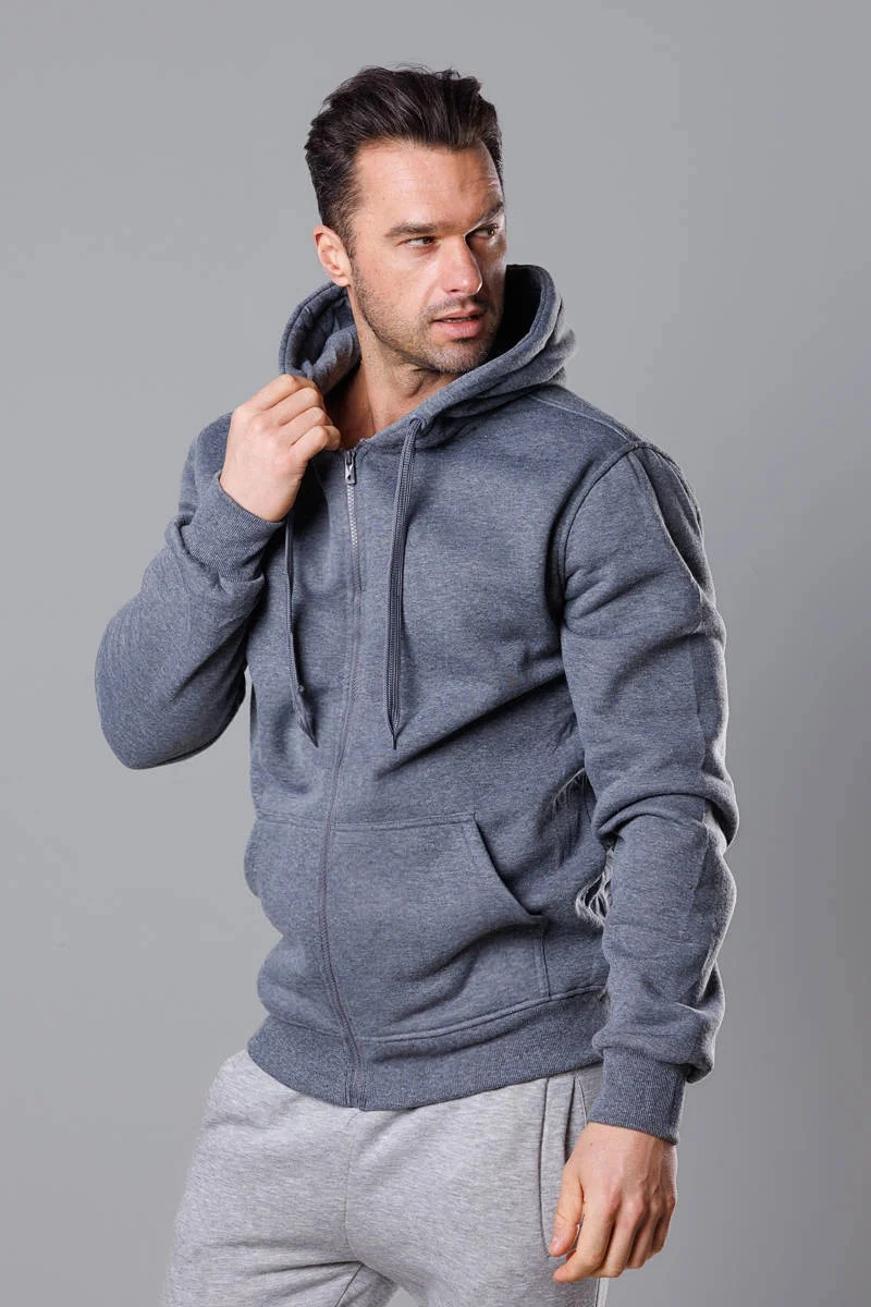 Tmavě šedá pánská rozepínací mikina s kapucí (68B2008-5)