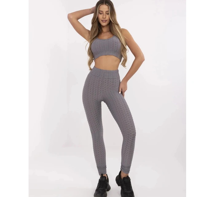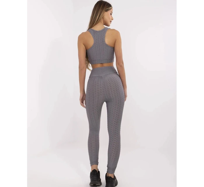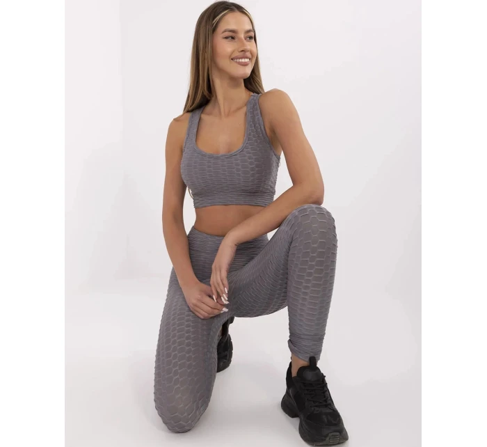 Tmavě šedý dámský sportovní komplet - top a legíny 5448