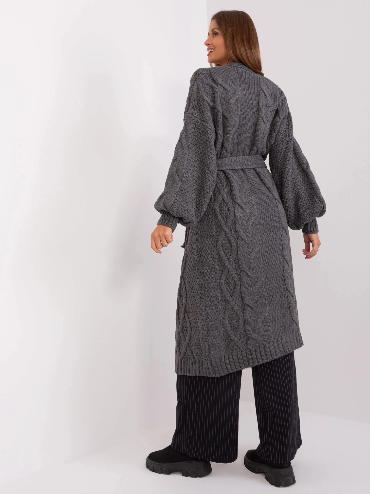 Tmavě šedý dlouhý hrubší kardigan s páskem (8020)