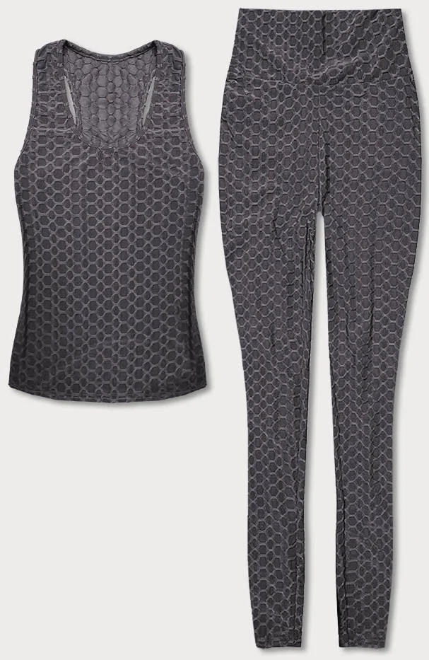 Tmavě šedý sportovní komplet top a legíny model 18433380 - J.STYLE
