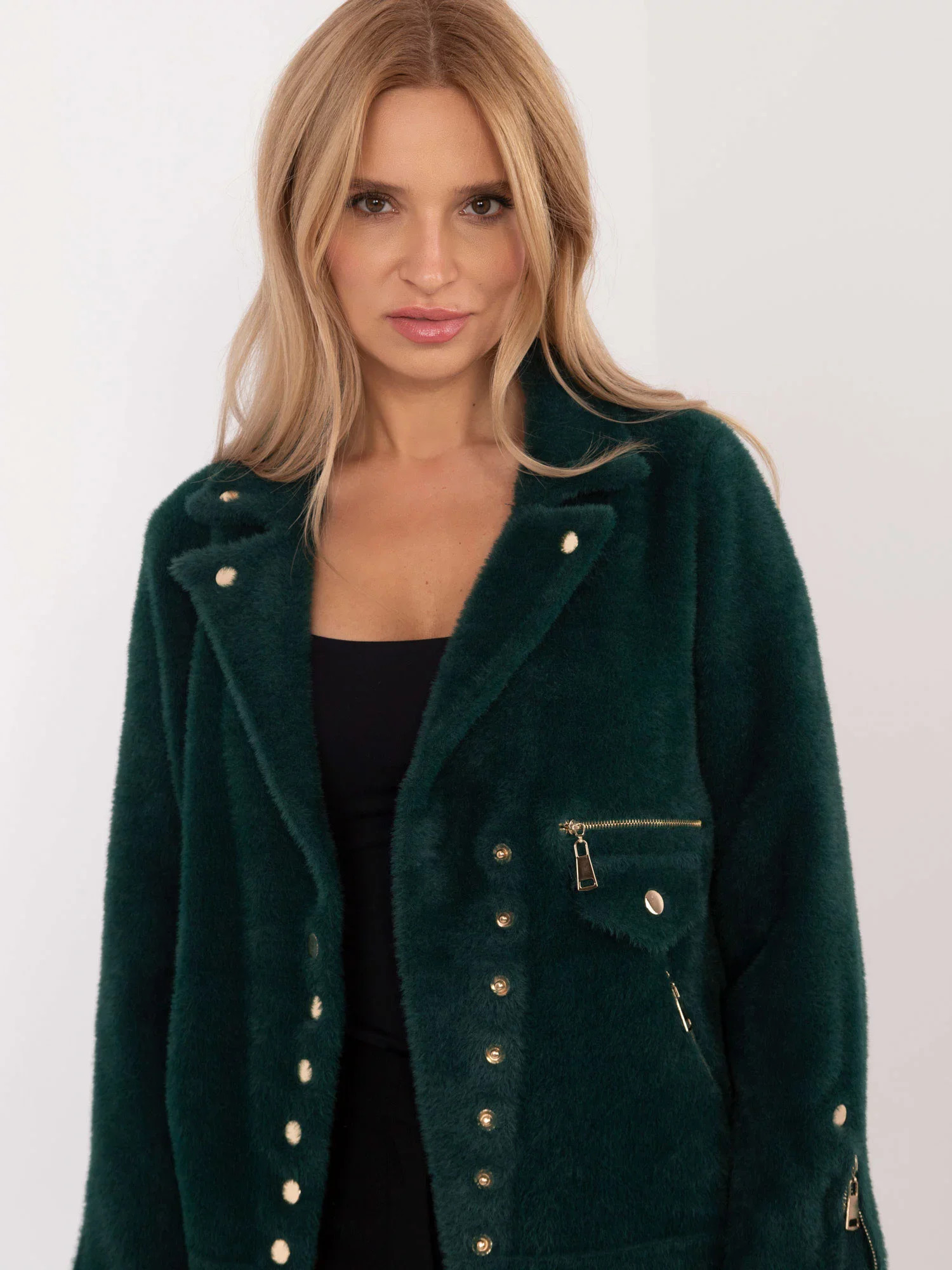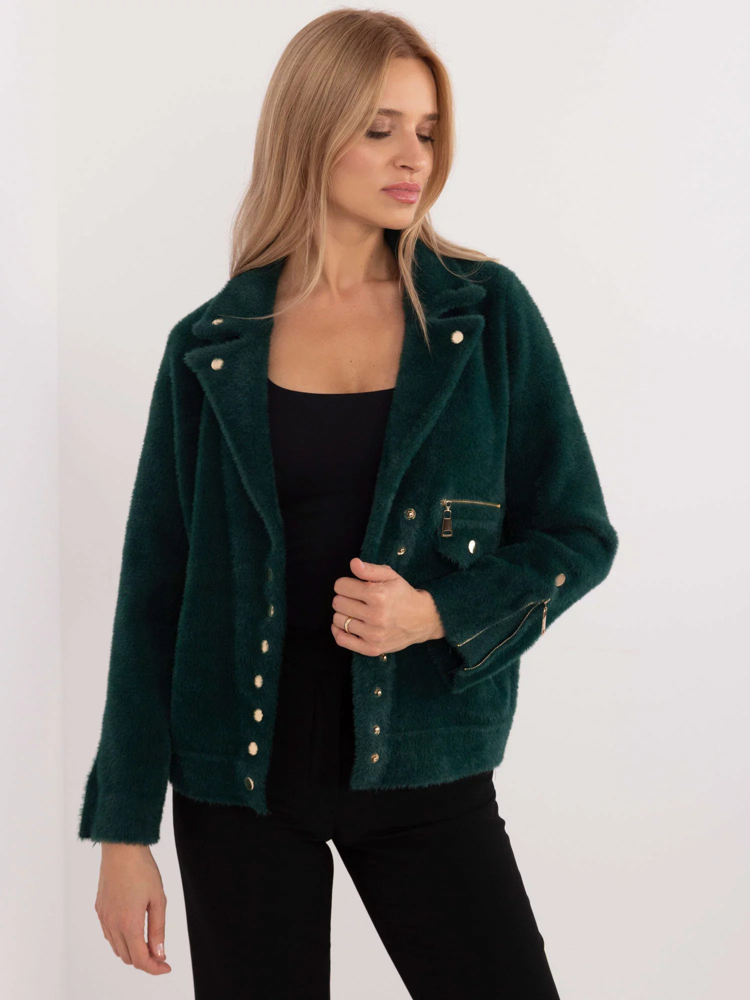 Přidání recenze k Tmavě zelená dámská zimní bunda s asymetrickým zipem (B8167-10)