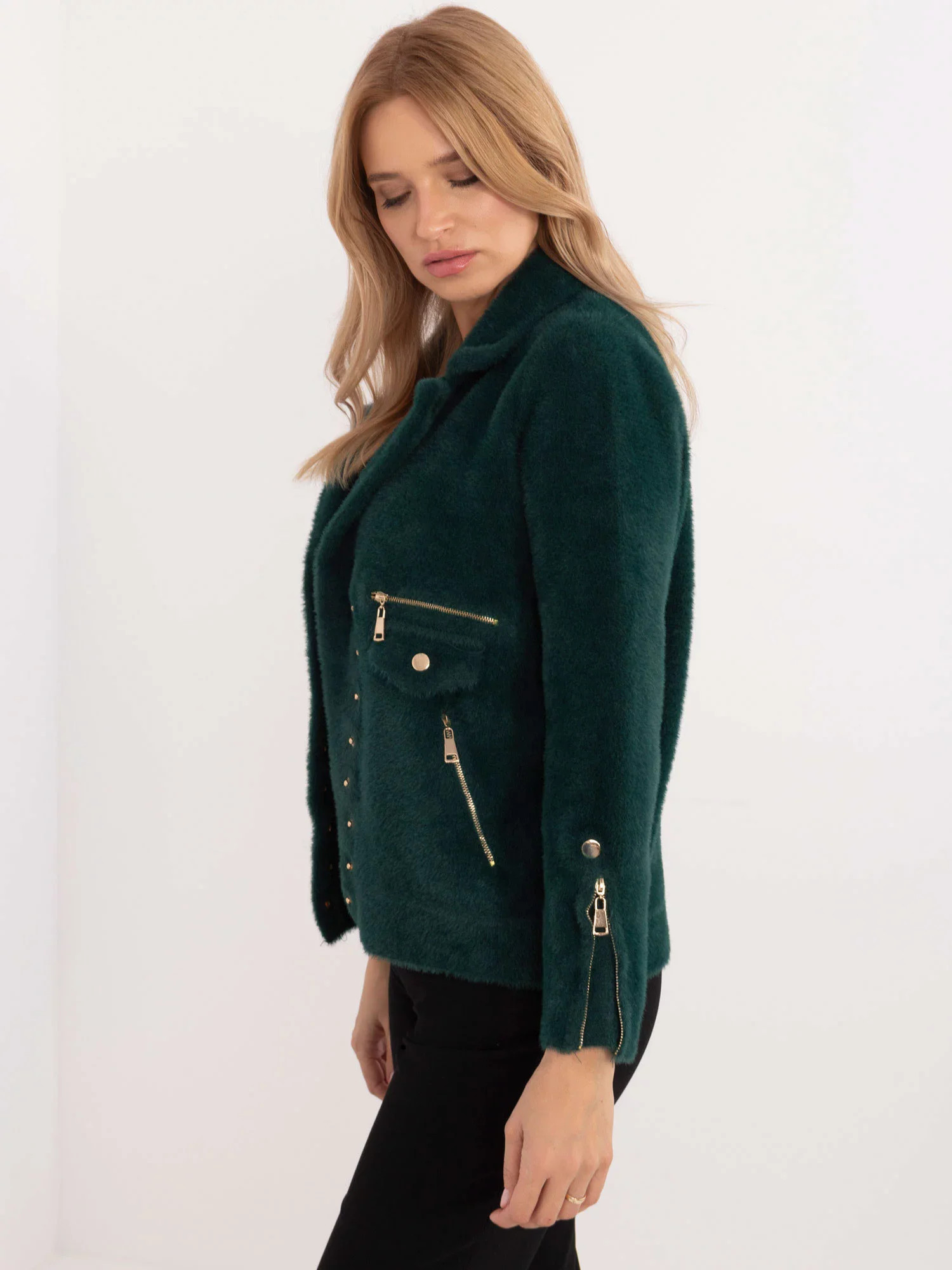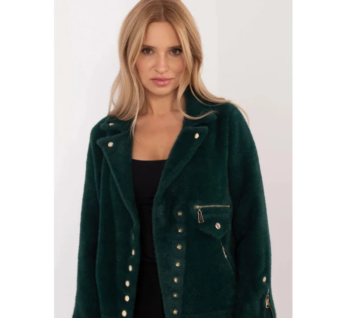 Tmavě zelená dámská zimní bunda s asymetrickým zipem (B8167-10)