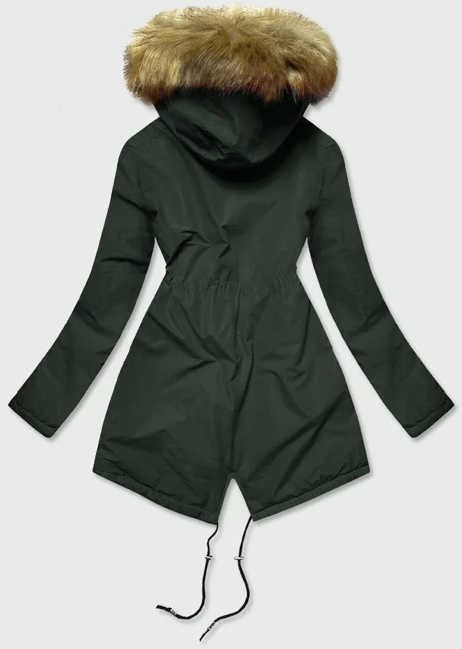 Tmavě zelená dámská zimní bunda typu parka (b2628)