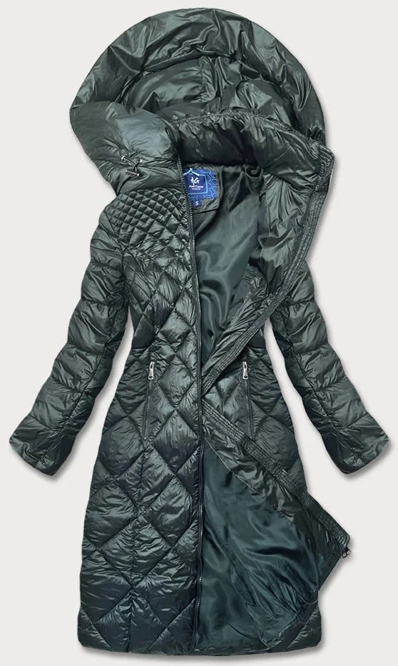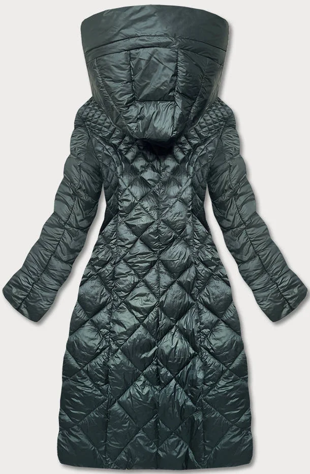 Tmavě zelená dlouhá dámská prošívaná bunda (ag1-j9082)
