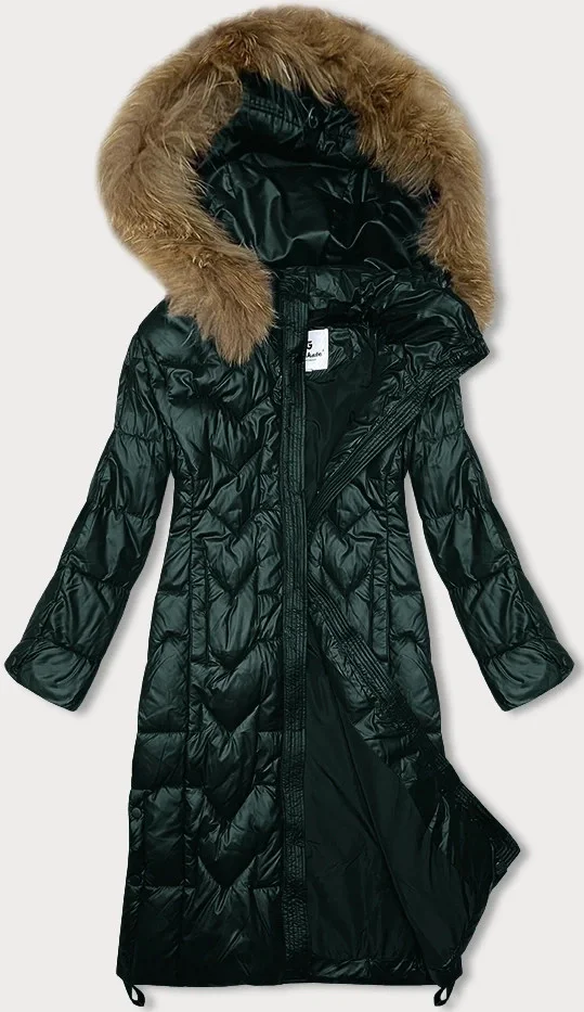 Tmavě zelená dlouhá dámská prošívaná bunda Glakate (LU-2203)
