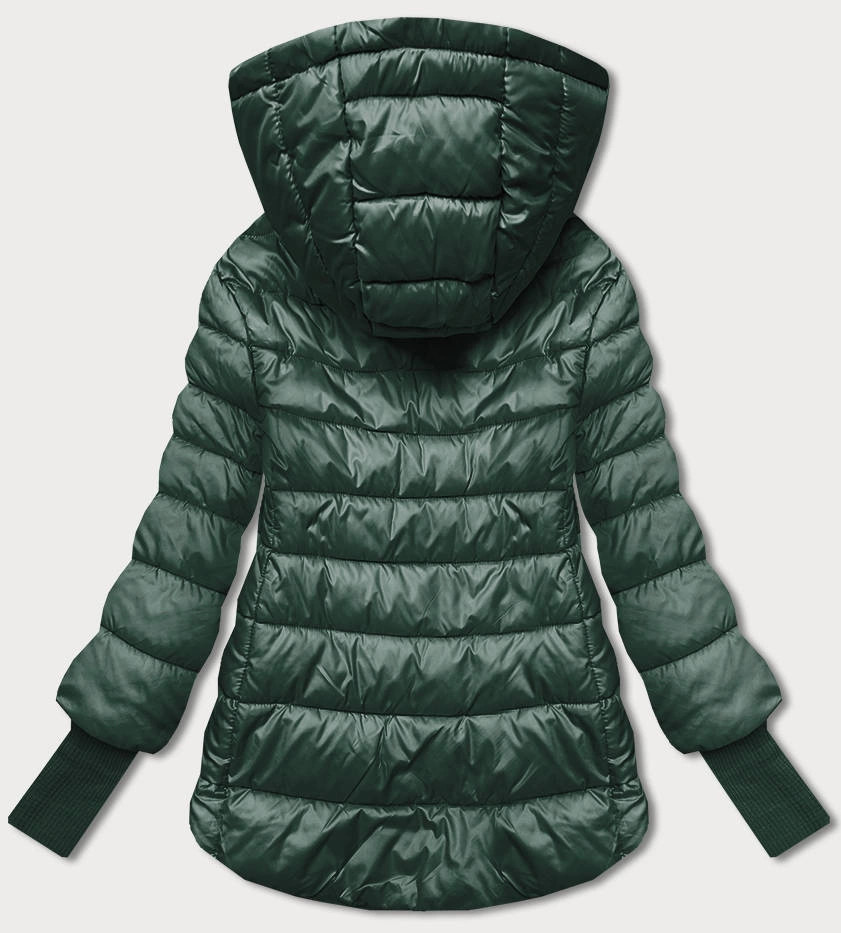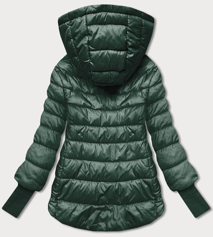 Tmavě zelená krátká dámská bunda s úpletovými stahovacími lemy (P22/P3-6636/P3-6023-33)