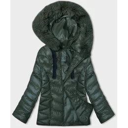 Tmavě zelená krátká zimní bunda s kapucí (5M3138-238)