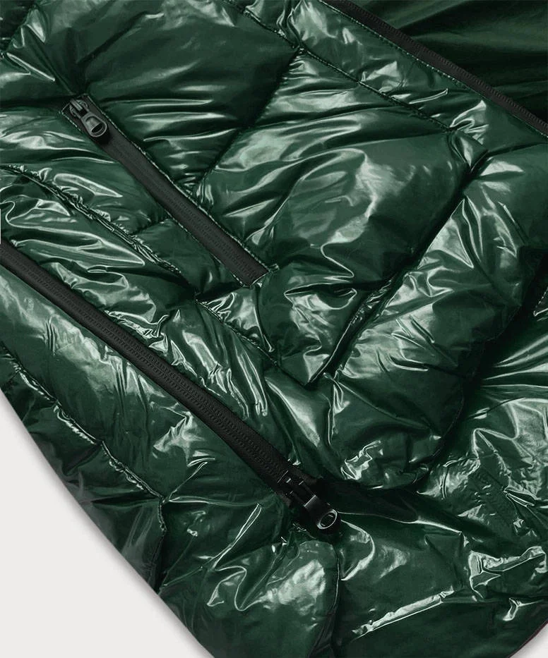 Přidání recenze k Tmavě zelená lakovaná prošívaná dámská bunda (7697)