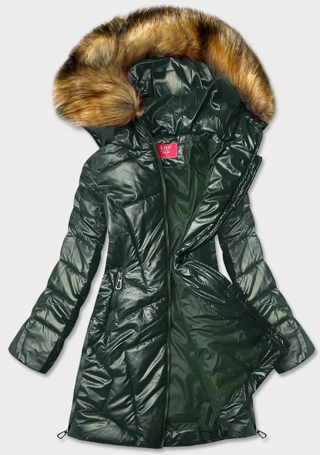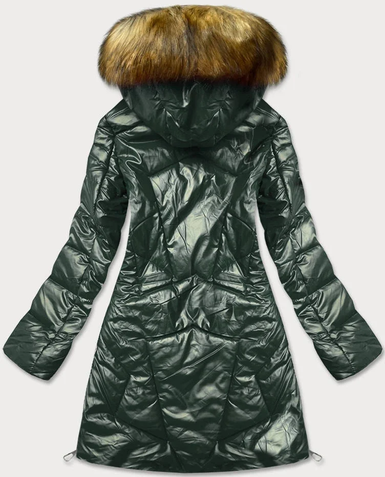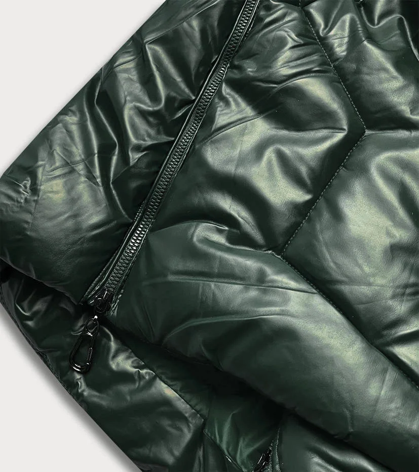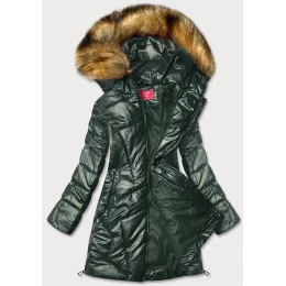 Tmavě zelená lesklá dámská zimní bunda (m-21008)