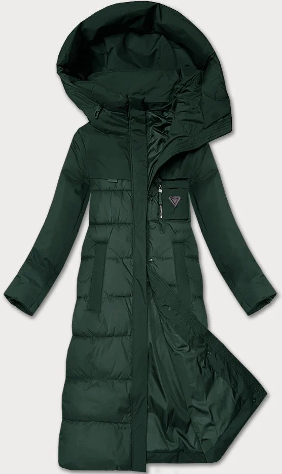 Tmavě zelená zimní bunda z různých spojených materiálů Libland (7820)