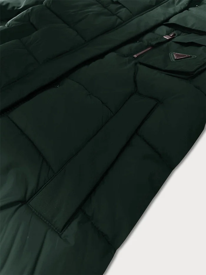 Tmavě zelená zimní bunda z různých spojených materiálů Libland (7820)