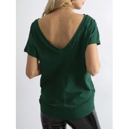 Tmavě zelené dámské tričko Tshirt basic s výstřihem vzadu Feel Good model 21266669 - Factory Price