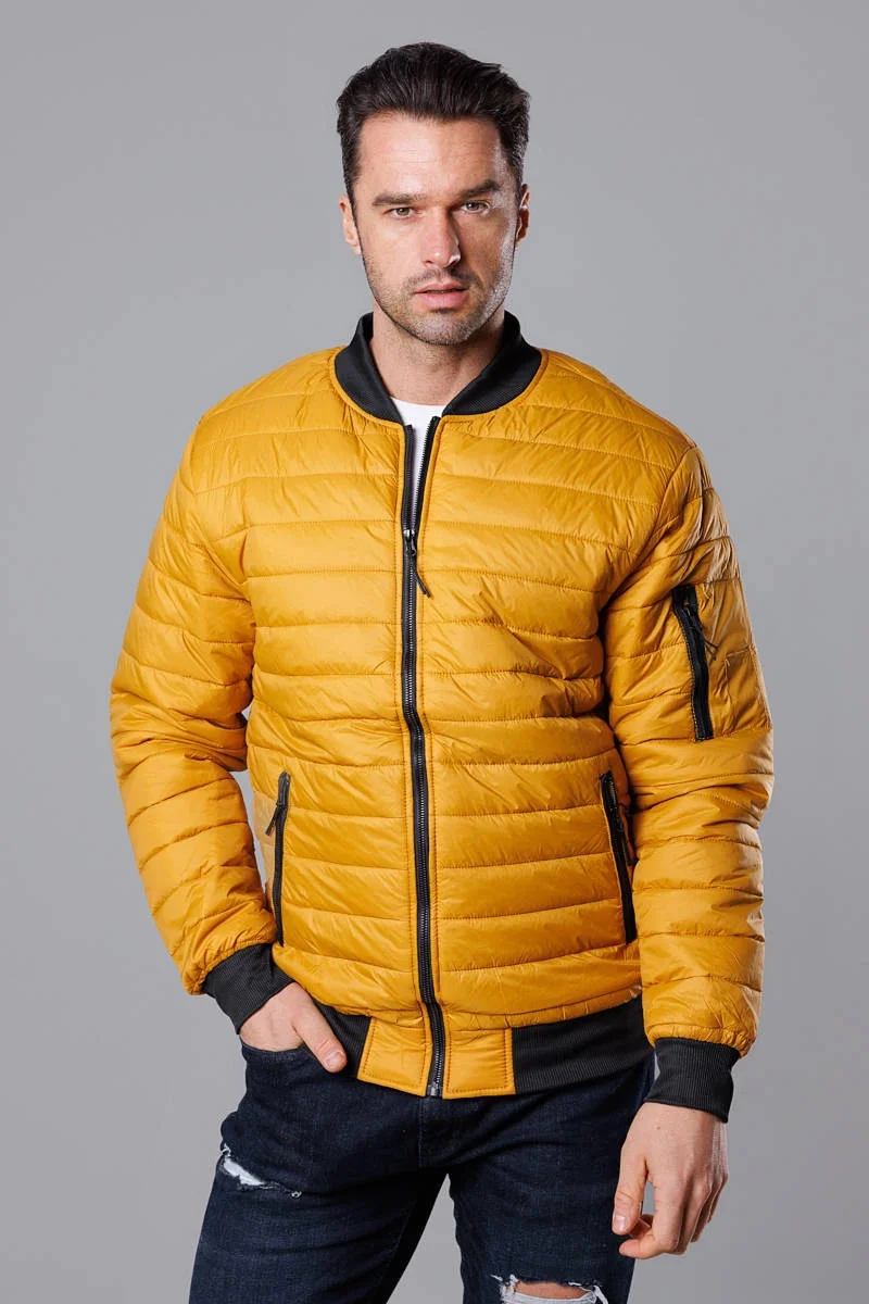 Tmavě žlutá pánská prošívaná bunda typu "bomber" model 18344869 - J.STYLE